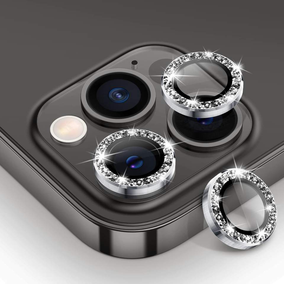 Protezione per Obiettivo Fotocamera iPhone 12 13 14 15 16 17, Vetro Temperato 9H, Copertura Protettiva con Glitter e Paillettes per iPhone 17
