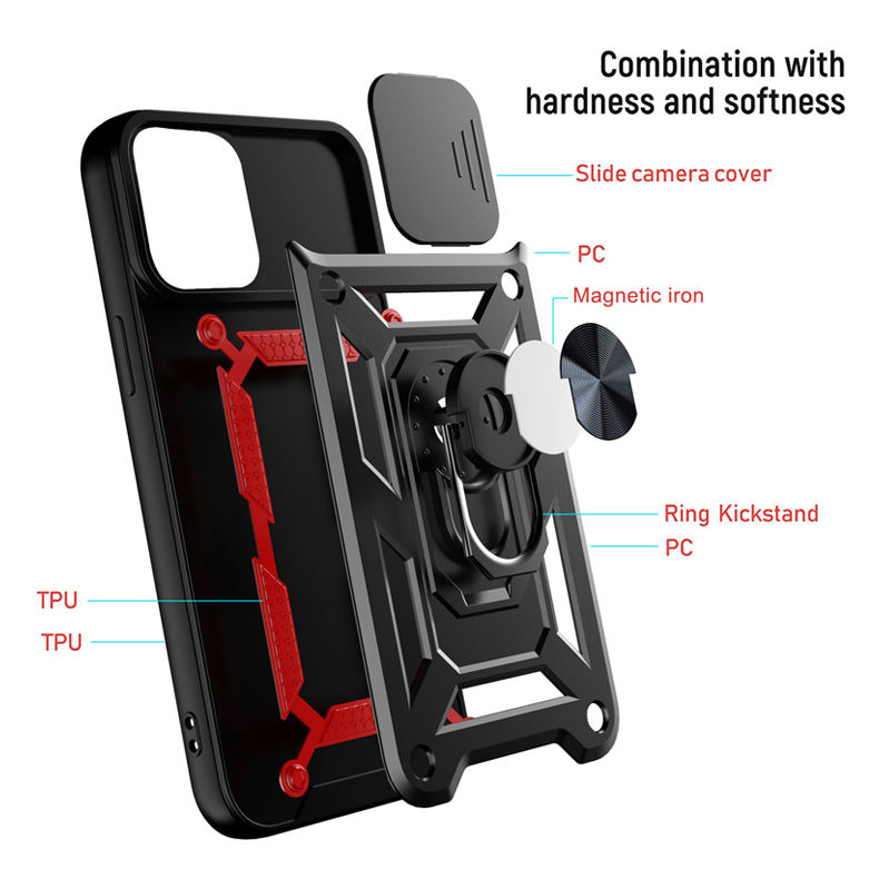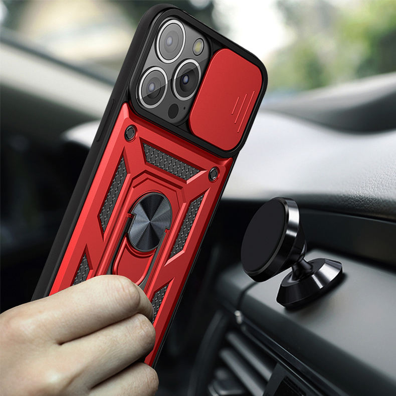 Per iPhone 14 13 12 11 Pro Max Cover posteriore Slide protezione della fotocamera ruota anello cavalletto custodia per telefono armatura all'ingrosso antiurto
