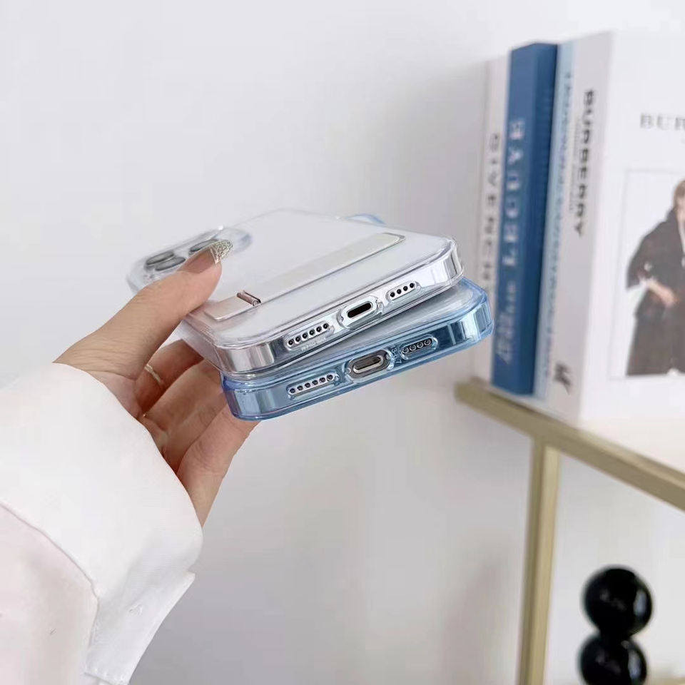 Per iPhone 14 cavalletto in metallo custodia trasparente Cover Skin Luxury Clear Appl custodia per telefono per iPhone14 custodia 11 12 13 Pro Max