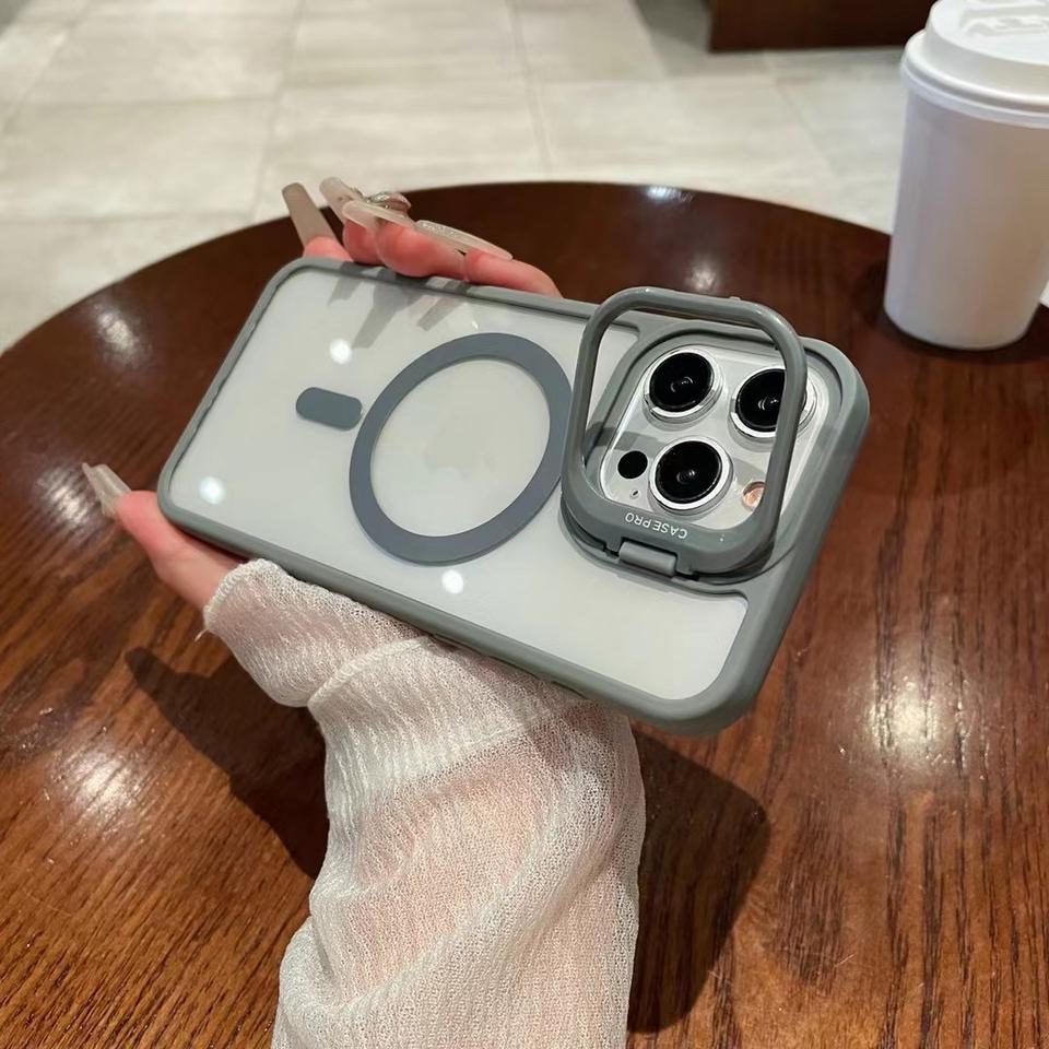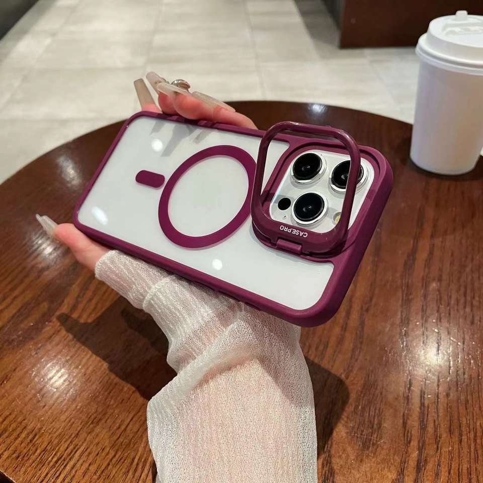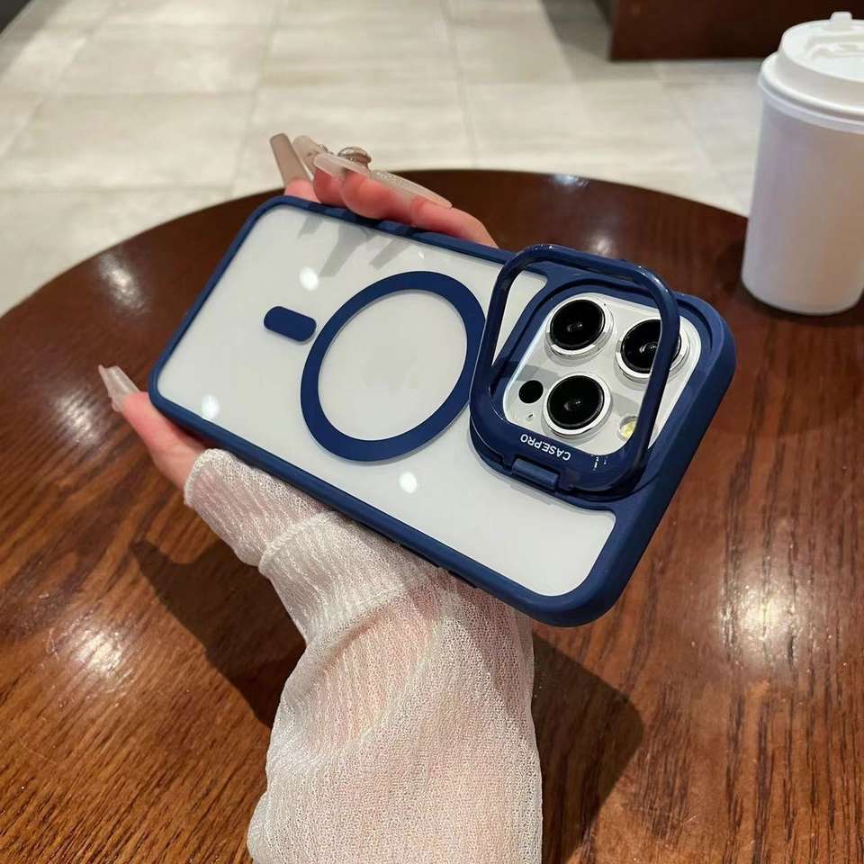 Cover per iPhone 16 Pro Max con Aspirazione Magnetica e Supporto per Obiettivo 2 in 1, Custodia Protettiva per iPhone 15 14 13 12 11