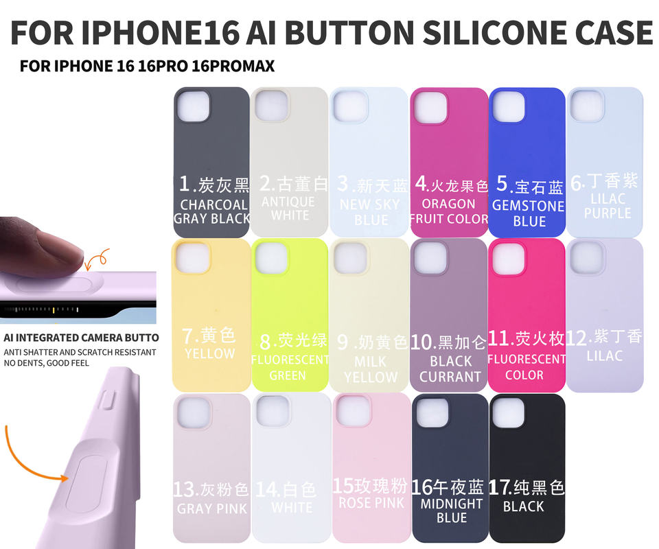 Per iPhone 16 Pro Max cassa del telefono di colore solido con i pulsanti AI per iPhone 16 custodia originale in Silicone morbido Cover del telefono