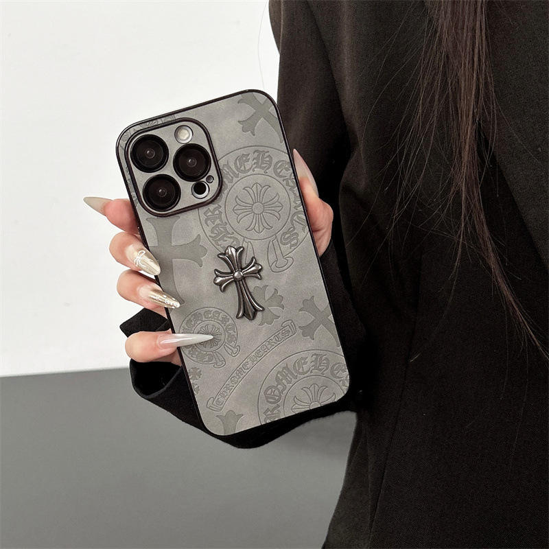 Cover per iPhone 17 Air, design cromato trendy a croce, nero, accessori 3D fai da te, custodia per iPhone 14 15 Pro Max Heart 16 Plus