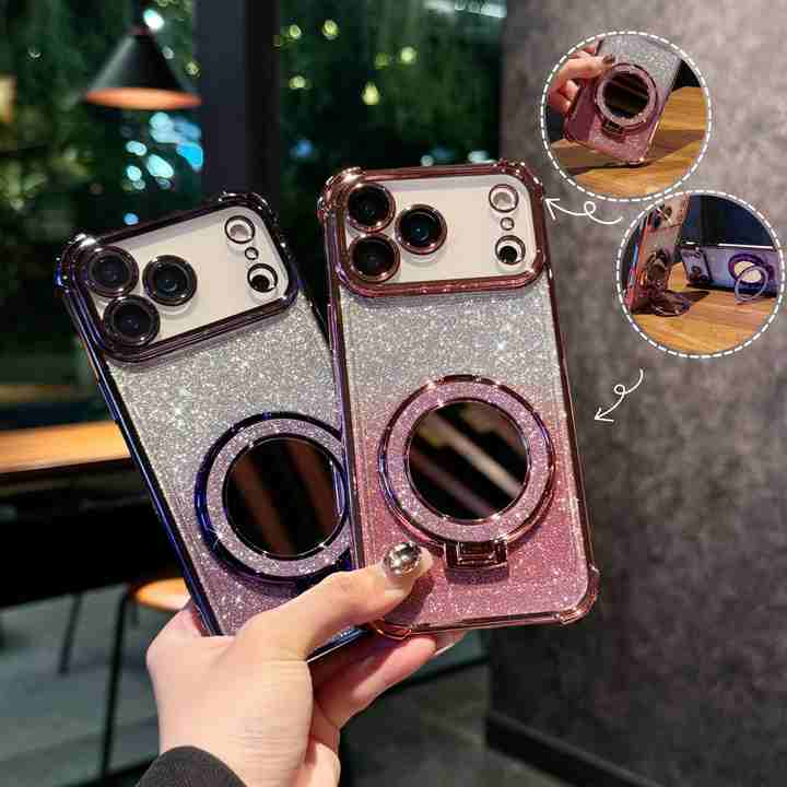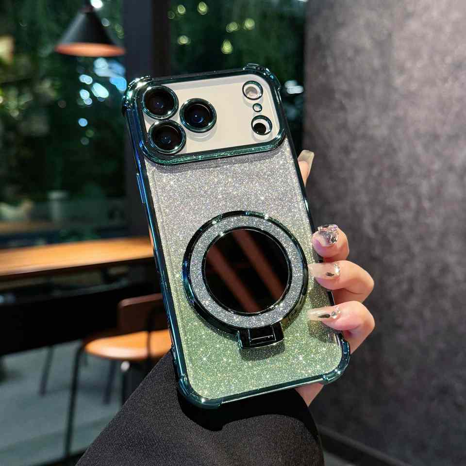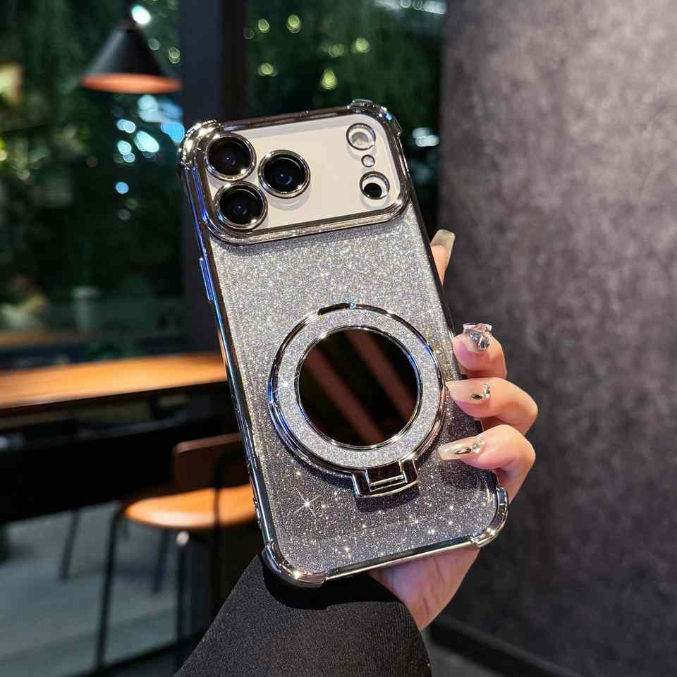 Per iPhone 17 Pro Max Glitter custodia a specchio magnetica 17 Air 16 Pro Max 15 14 12 12 Pro Bling Cover posteriore antiurto con supporto