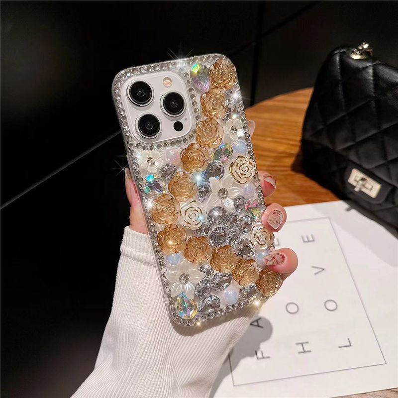 Per iphone 11 12 13 14 15 pro max custodia con strass di lusso per iphone x cover con motivo a fiore diamantato custodie
