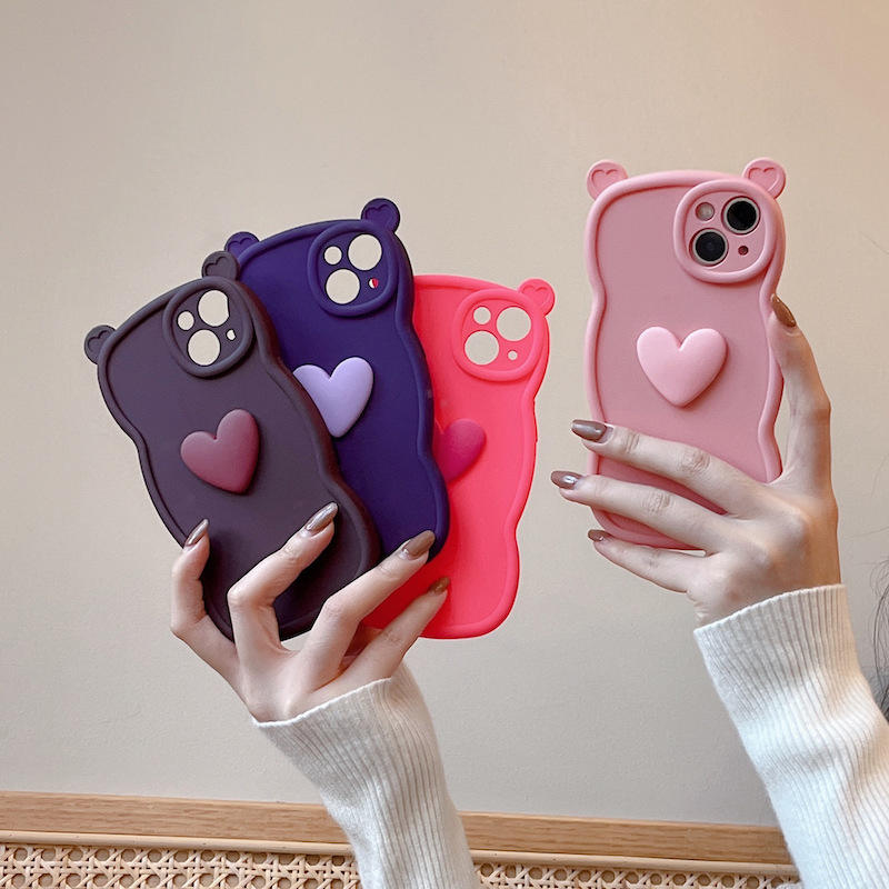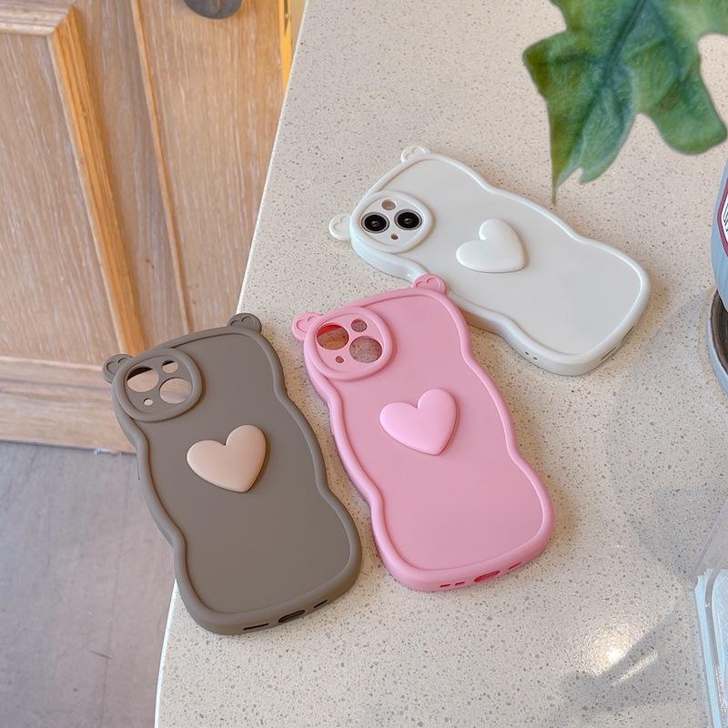 For iphone X XS XR 11 12 13 14 15 16 Pro MAX Cute Bear Phone Case With 3D Heart
