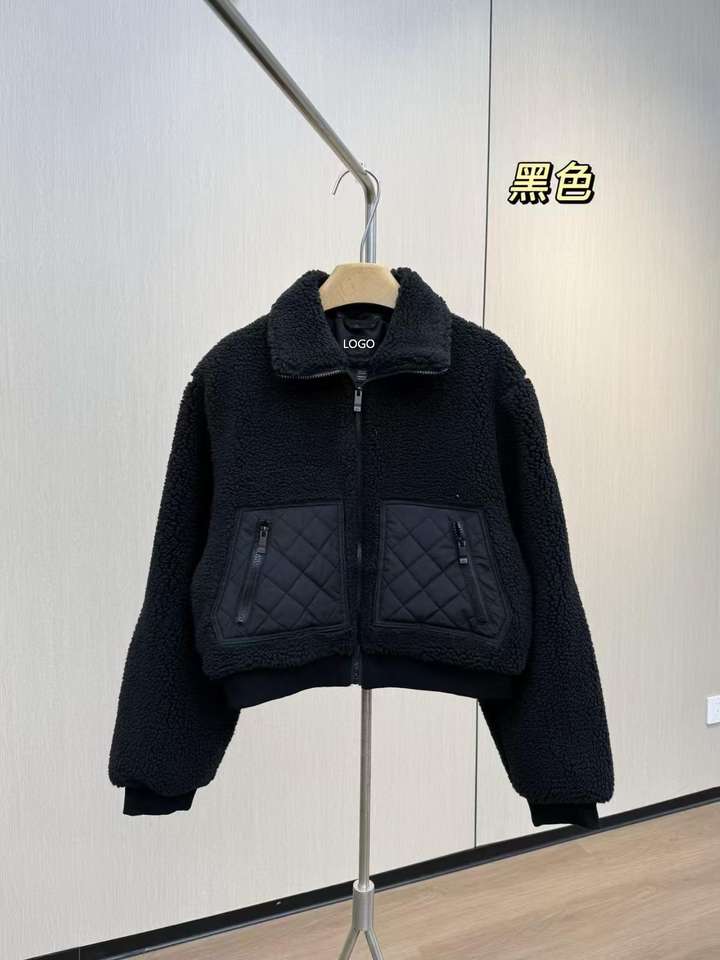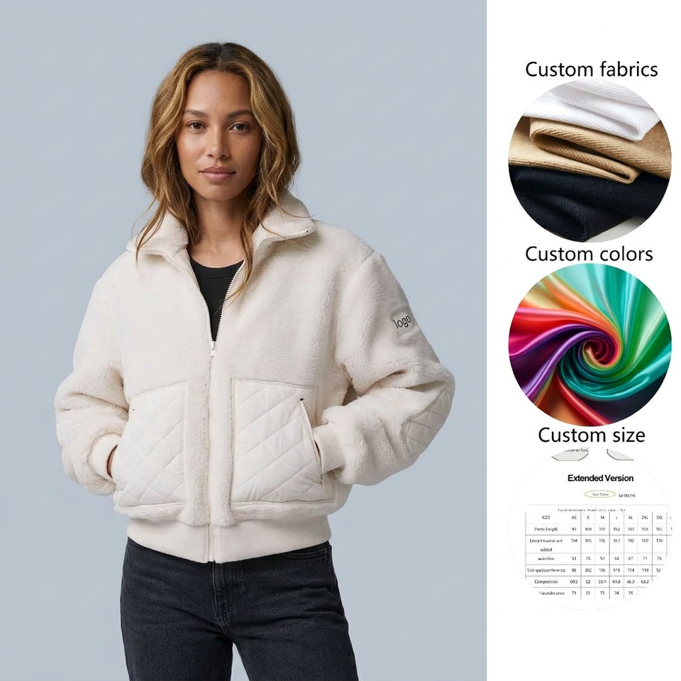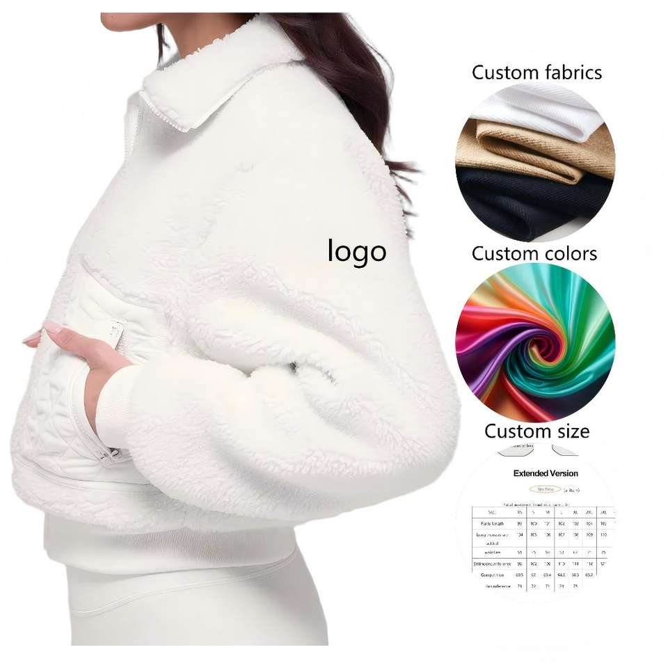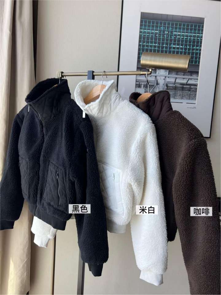Giacca a vento casual in pile spesso con cerniera e collo alto in pelliccia di agnello, tinta unita, nuova collezione autunno 2025