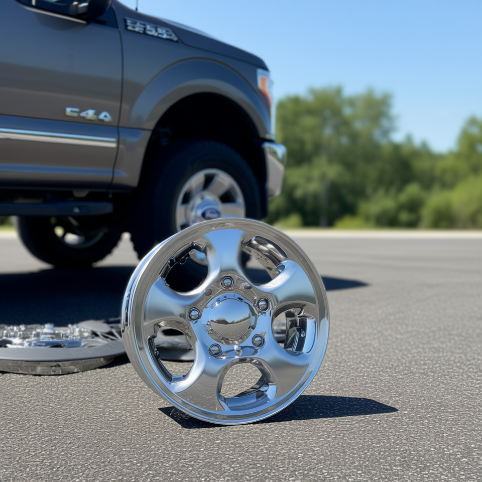 Copricerchi Ford da 19,5 pollici a 10 fori in acciaio inossidabile lucidato a specchio, kit di fissaggio a bullone per F450 F550 2005-2020