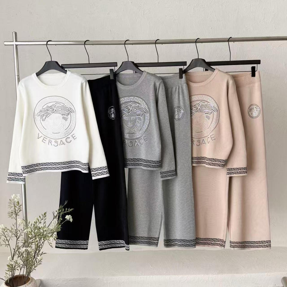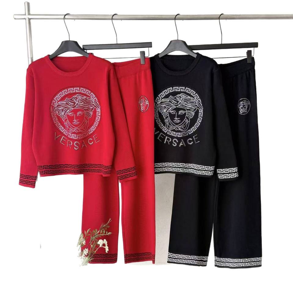 Maglione in misto lana anti-piega stile europeo-americano ELEGANTE per il commercio estero, completo autunnale da donna con pantaloni casual 1025