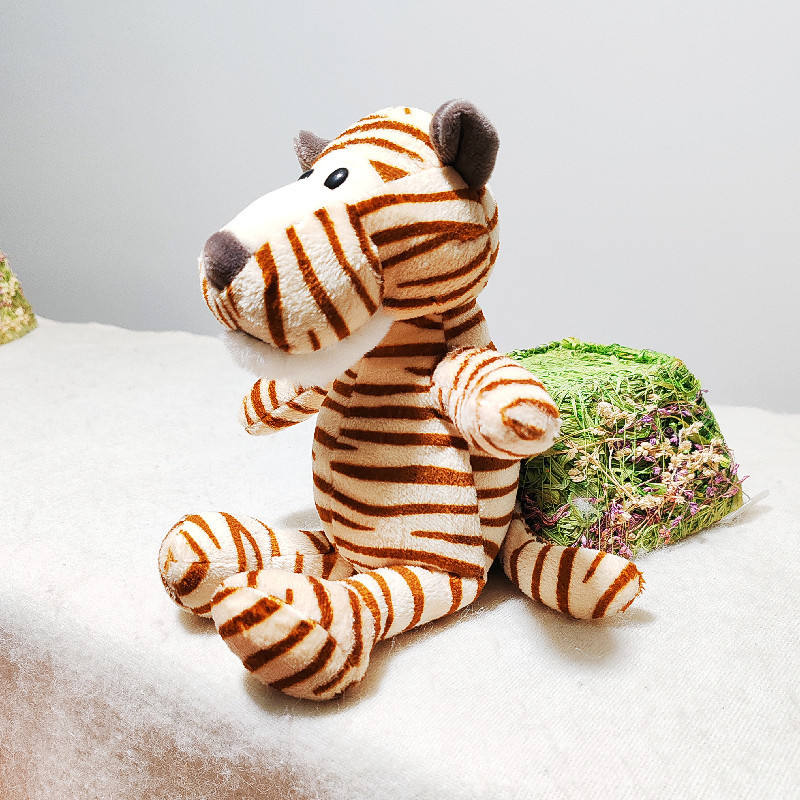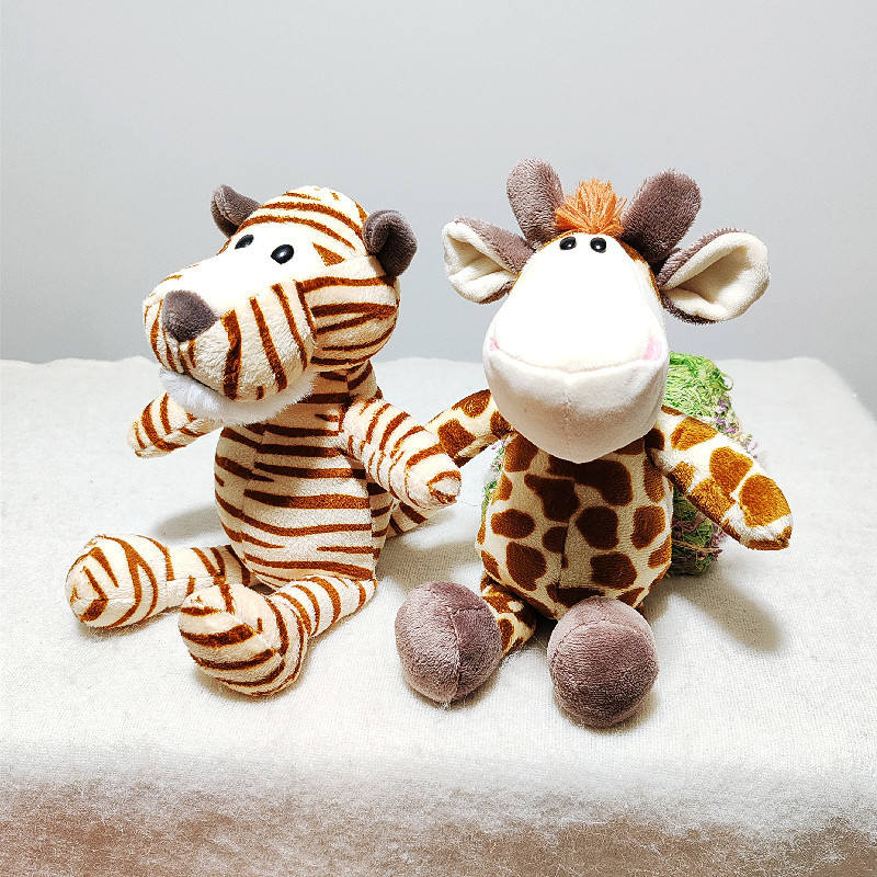 Peluche di animali della foresta (tigre, cervo) per il commercio estero, piccole bambole per bambini da 8 pollici, in cotone PP, figurine per macchine a griffa e stand