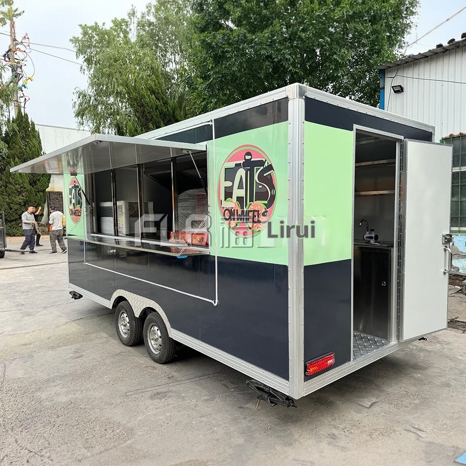 Produttori di commercio estero in acciaio inox rimorchio cibo quadrato Mobile carrozza Gourmet personalizzato Hamburger caffè bancarella all'aperto