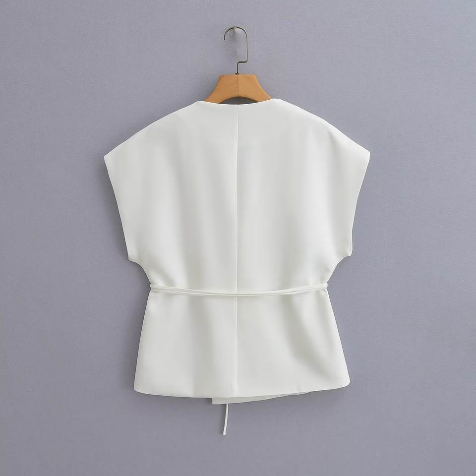 Foreign Trade Women's Linen Double-Breasted Vest Pleated Pants Solid Color Women's Set Hot Cross-Border Elegant Style
