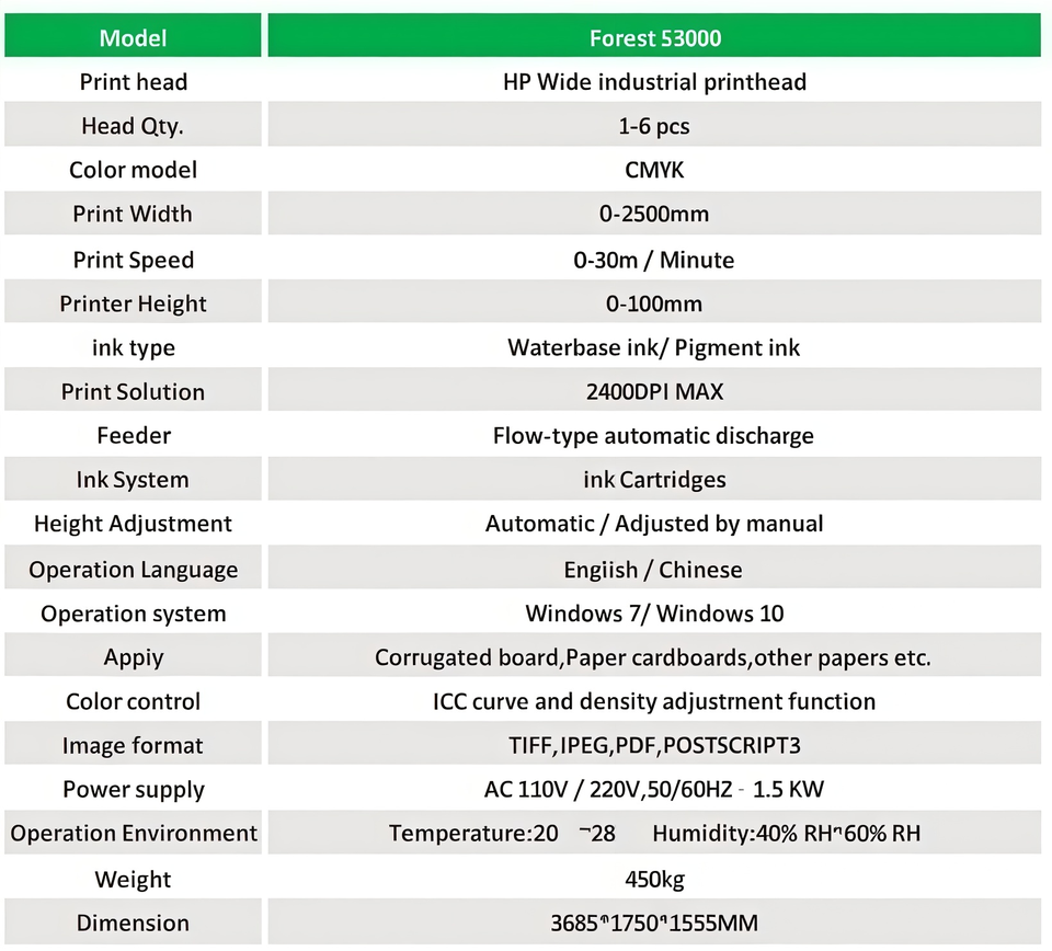 Stampante Automatica Monopass Forest Nuovissima per Scatole di Cartone, Sacchetti di Caffè, Scatole per Pizza, Sacchetti di Carta