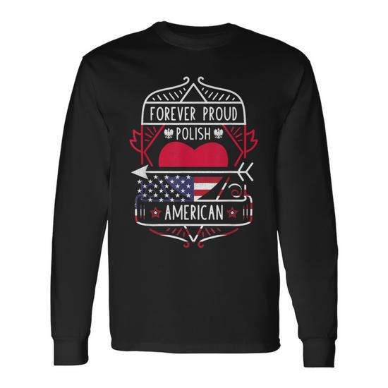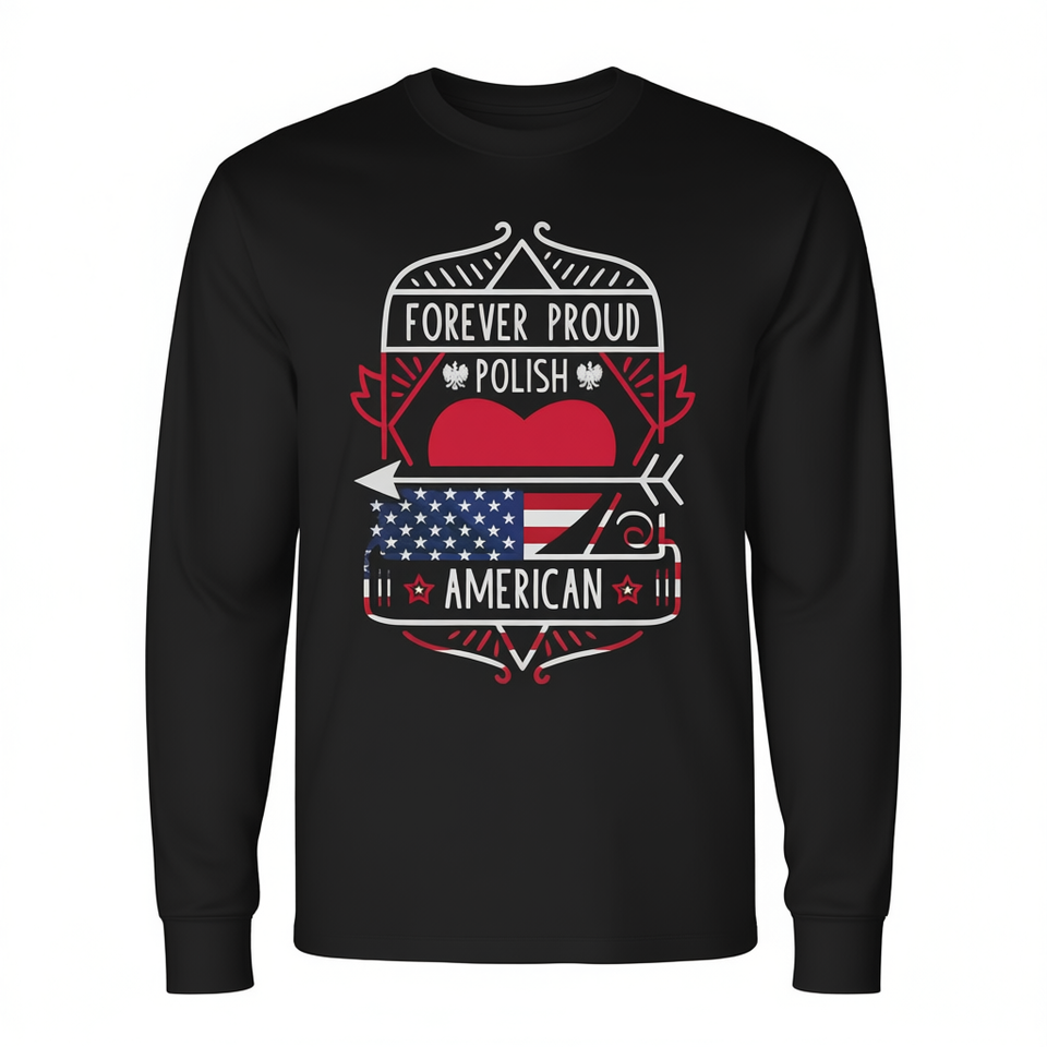 Maglietta a Maniche Lunghe 'Forever Proud' per Celebrazione Polacco-Americana della Polonia e degli USA, per Uso Promozionale