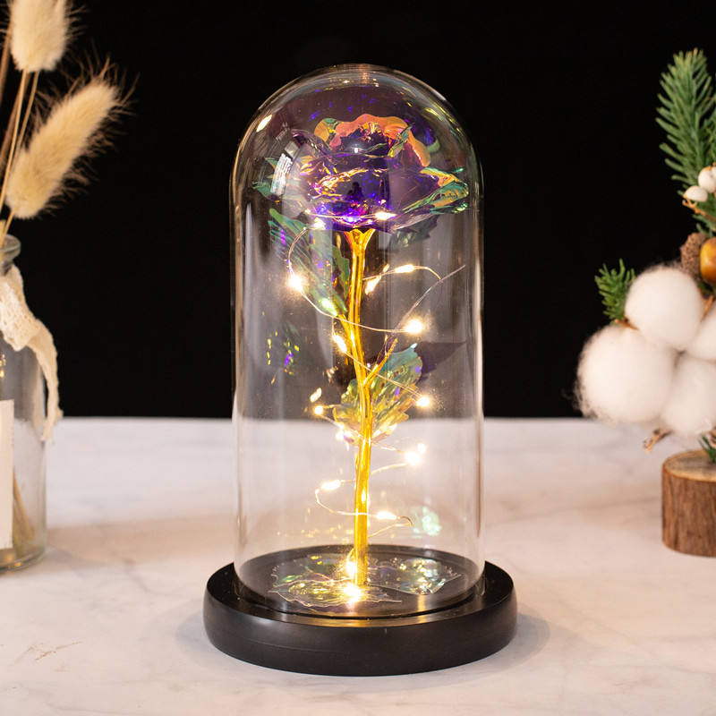 Forever Rose in a Glass Dome with Led Light Eternal Rose Galaxy Rose Flower Best Gift for Her on Valentine's Day Mother's Day