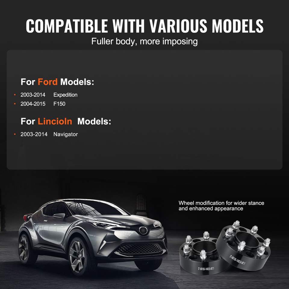 Distanziali Ruota Forgiati da 2 pollici 6x5.3 pollici, Hubcentric a 6 Fori con Perni M14x2, Adattatori Ruota con Foro da 87.1 mm per Ford Expedition, Vestibilità Perfetta