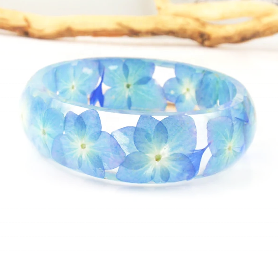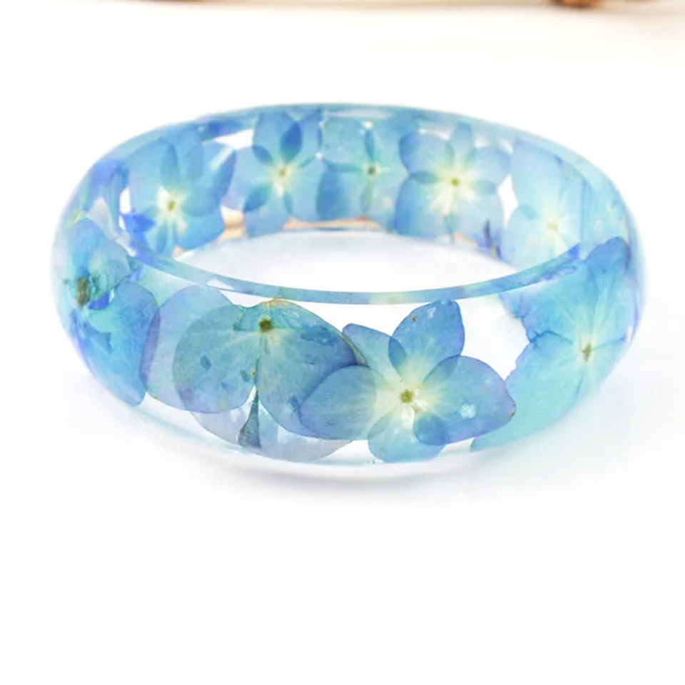 Bracciale in Resina con Fiori Veri di Ortensia Blu, Gioiello Bohémien alla Moda 'Non Ti Scordar di Me' per Lei