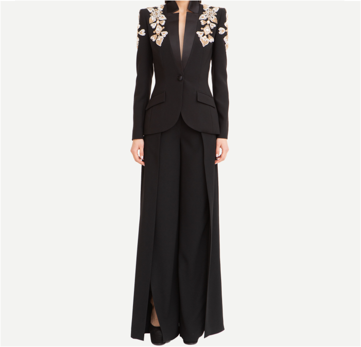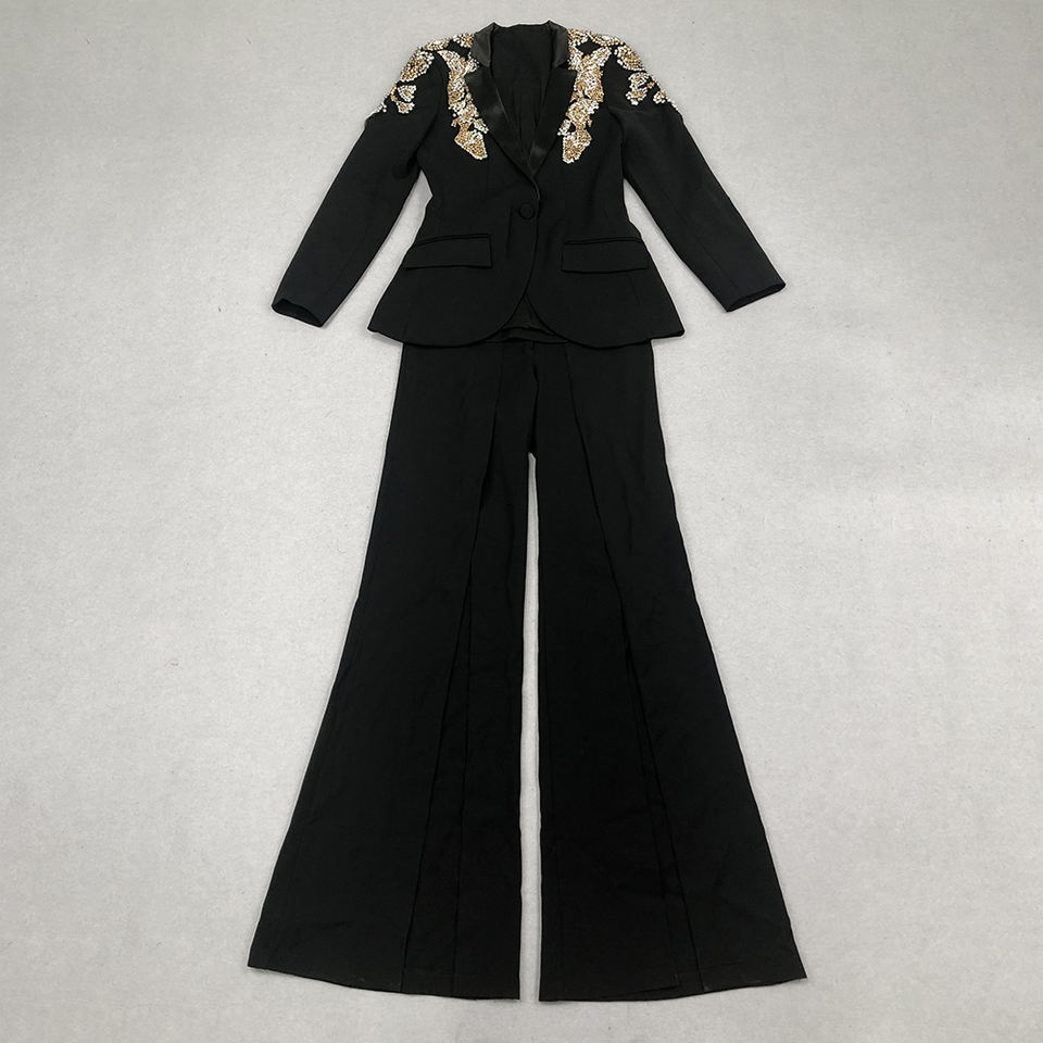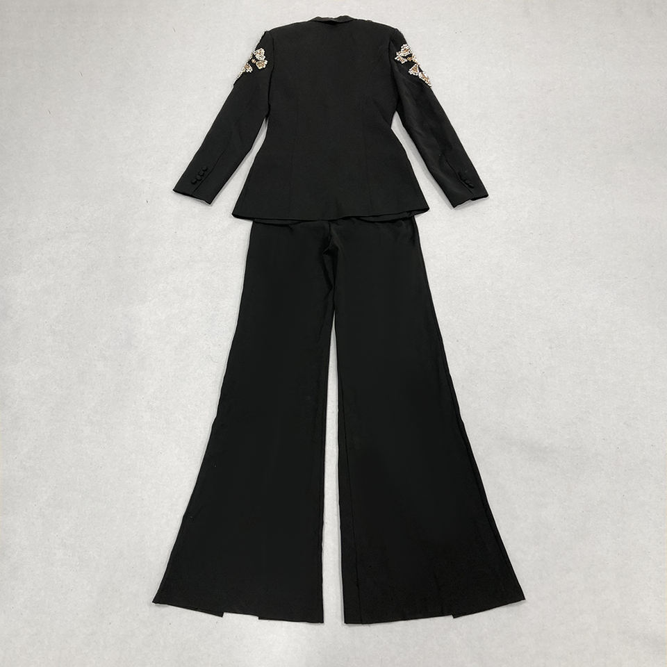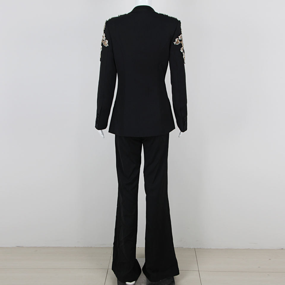 Formal Elegant Ladies Official Suits With Rhinestone Single Button Women blazer and Trouser 2 Piece Set
