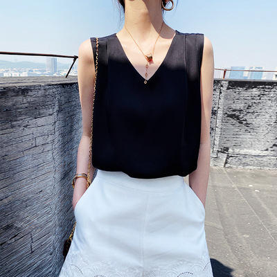 Formal Silk Blouses Elegant Women Solid Sleeveless Tank Luxury Tops Ladies Fashion White Satin Office Summer Blouses for Woman