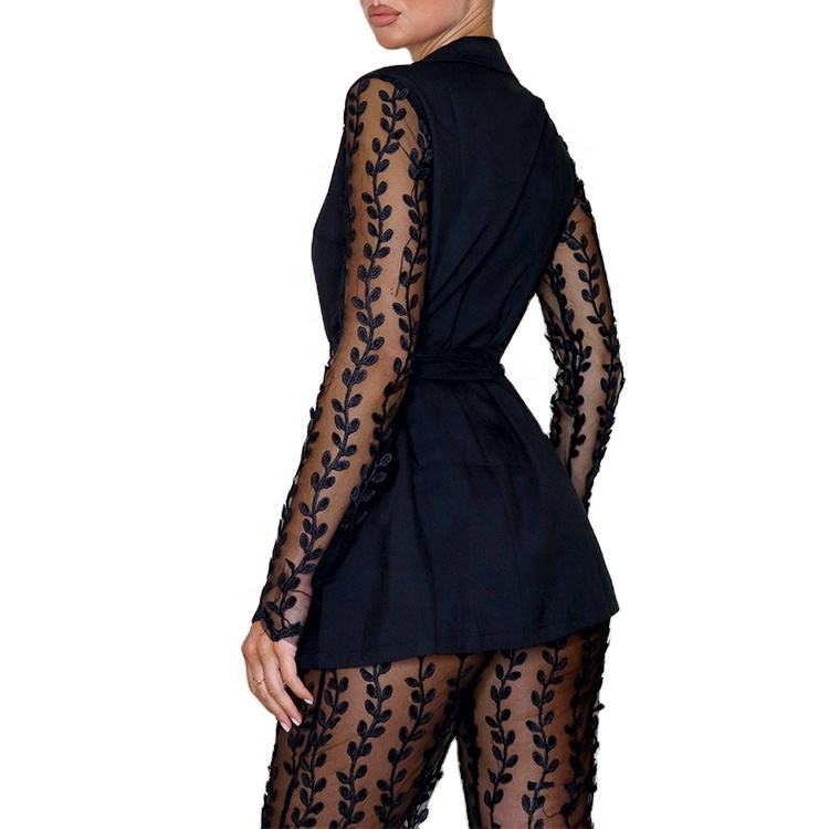 Nome del prodotto:Formale Giacca Sportiva delle Donne di Autunno di Colore Solido Del Merletto Del Ricamo Cintura Giacca