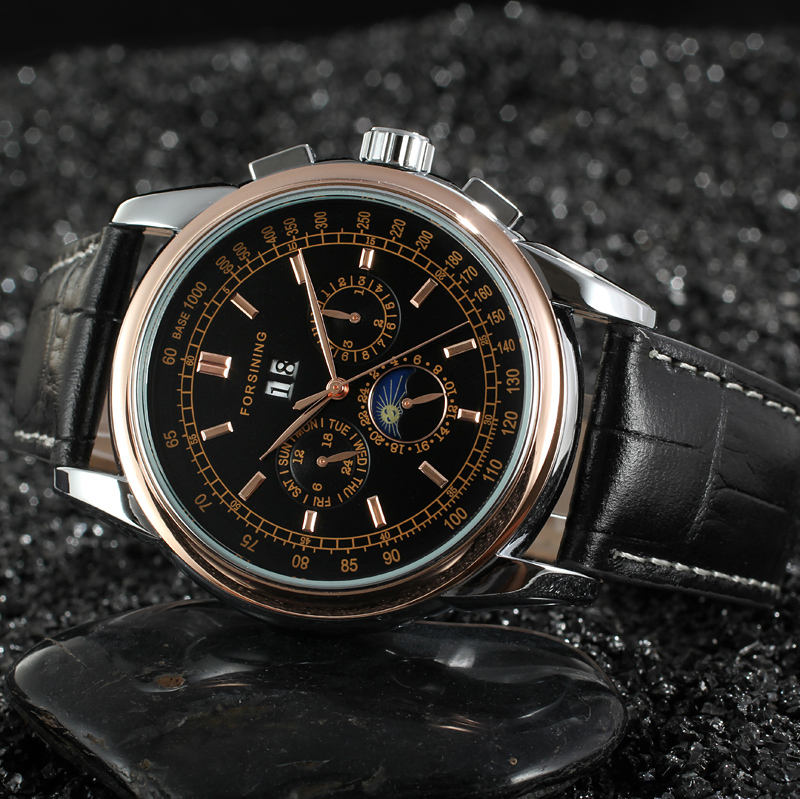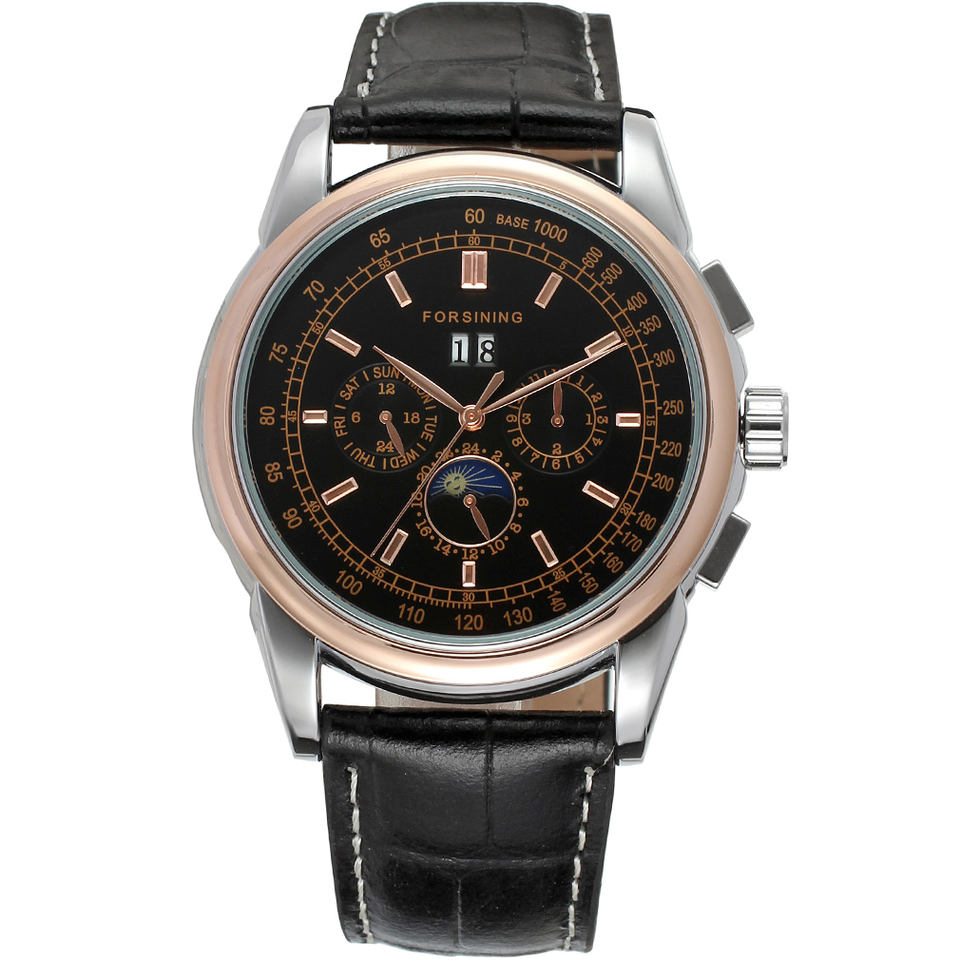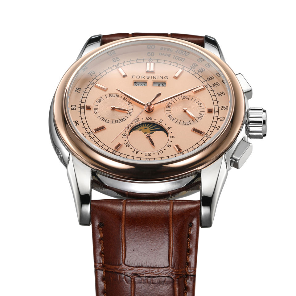 Forsining Nuovi Orologi Meccanici da Uomo con Cinturino in Vera Pelle, Orologio da Polso Automatico alla Moda