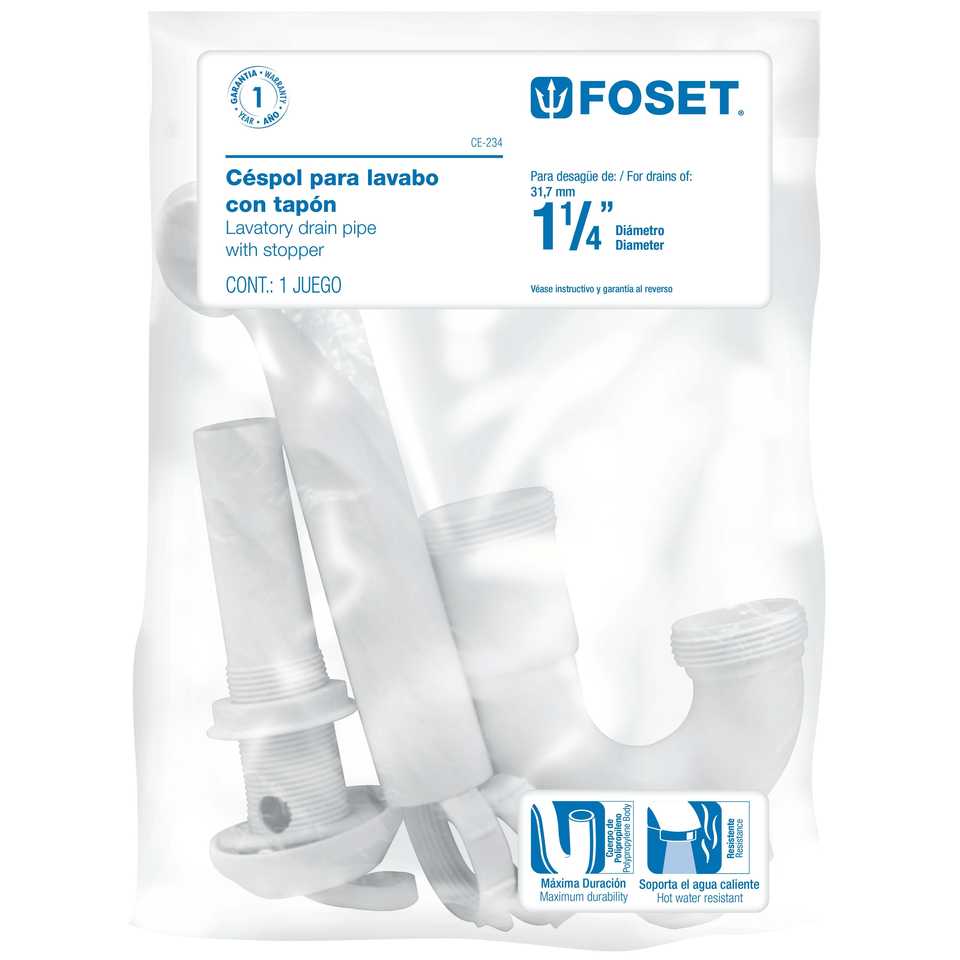 Foset CE-234 1-1/4' Cespol Rigid Basin Drain with Polypropylene Contra CE Certified