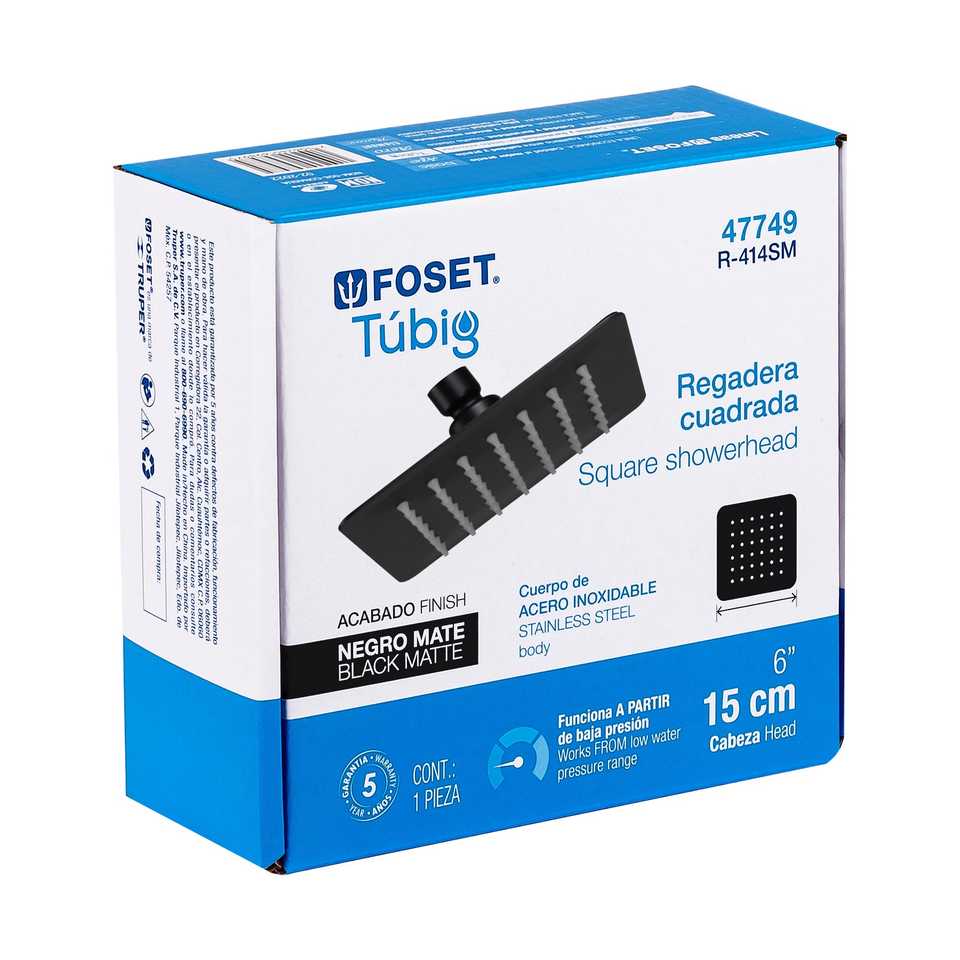 Foset R-414SM 6' Square Stainless Steel Armless Shower Head Black T√тинig Bath Hardware Set