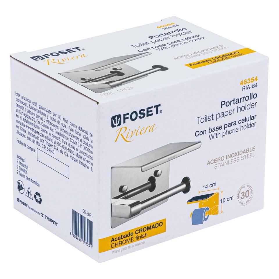 Foset RIA-84 Modern Chrome Toilet Paper Holder with Cell Phone Holder Plastic Riviera Tissue Holder