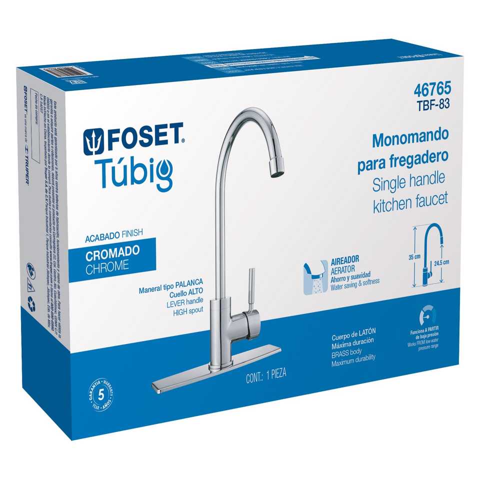 Foset TBF-83 Single-Lever Sink Mixer High Neck Chrome Modern Contemporary Design Hot Cold Water Function Brushed Plated Antique