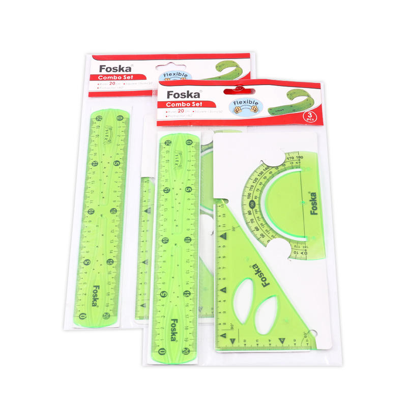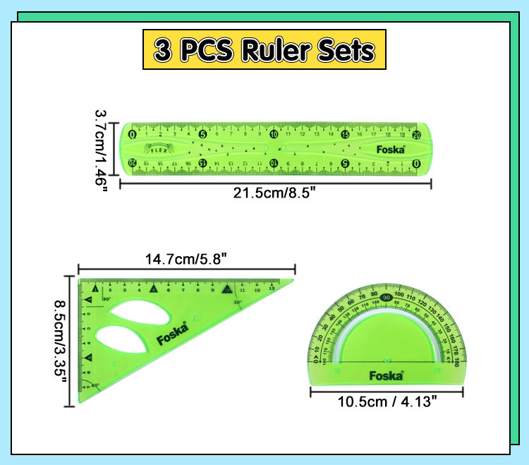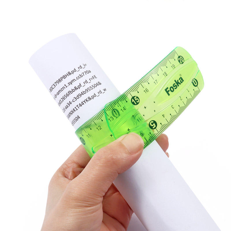 Set di 3 Righelli Flessibili in PVC Morbido Verde Foska con Centimetri e Pollici per Disegno e Uso in Classe