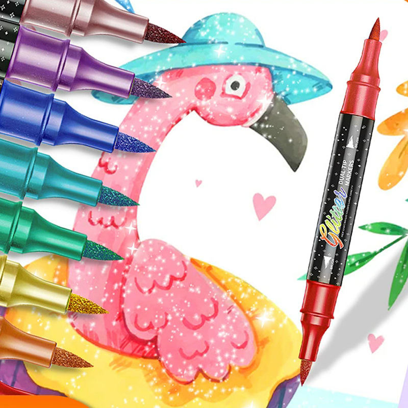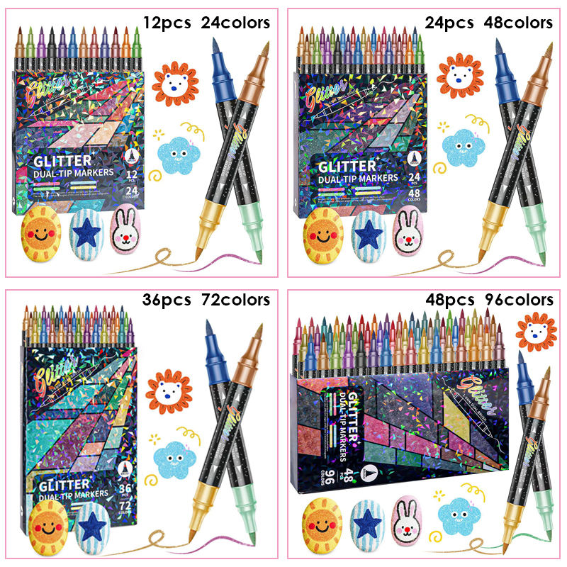 Pennarelli Acrilici Foska Non Tossici Multicolore, Set da 12 24 36 48 Pennarelli Glitter a Doppia Punta per Disegno, per Bambini e Studenti