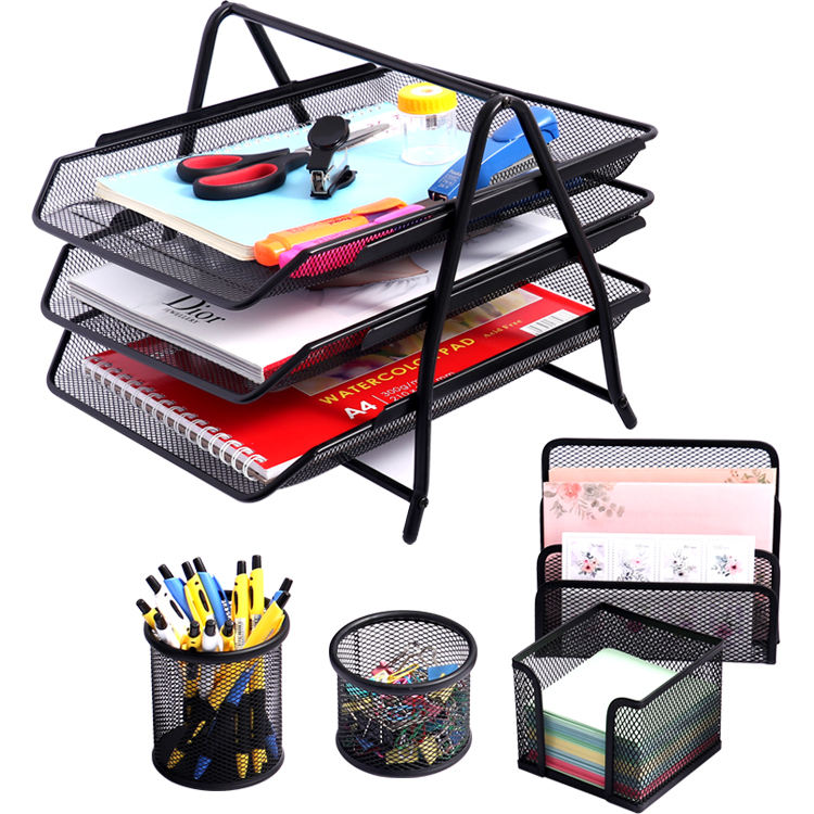Vassoio di file, organizzatore di posta, supporto per note adesive, tazza per penna, supporto per graffette