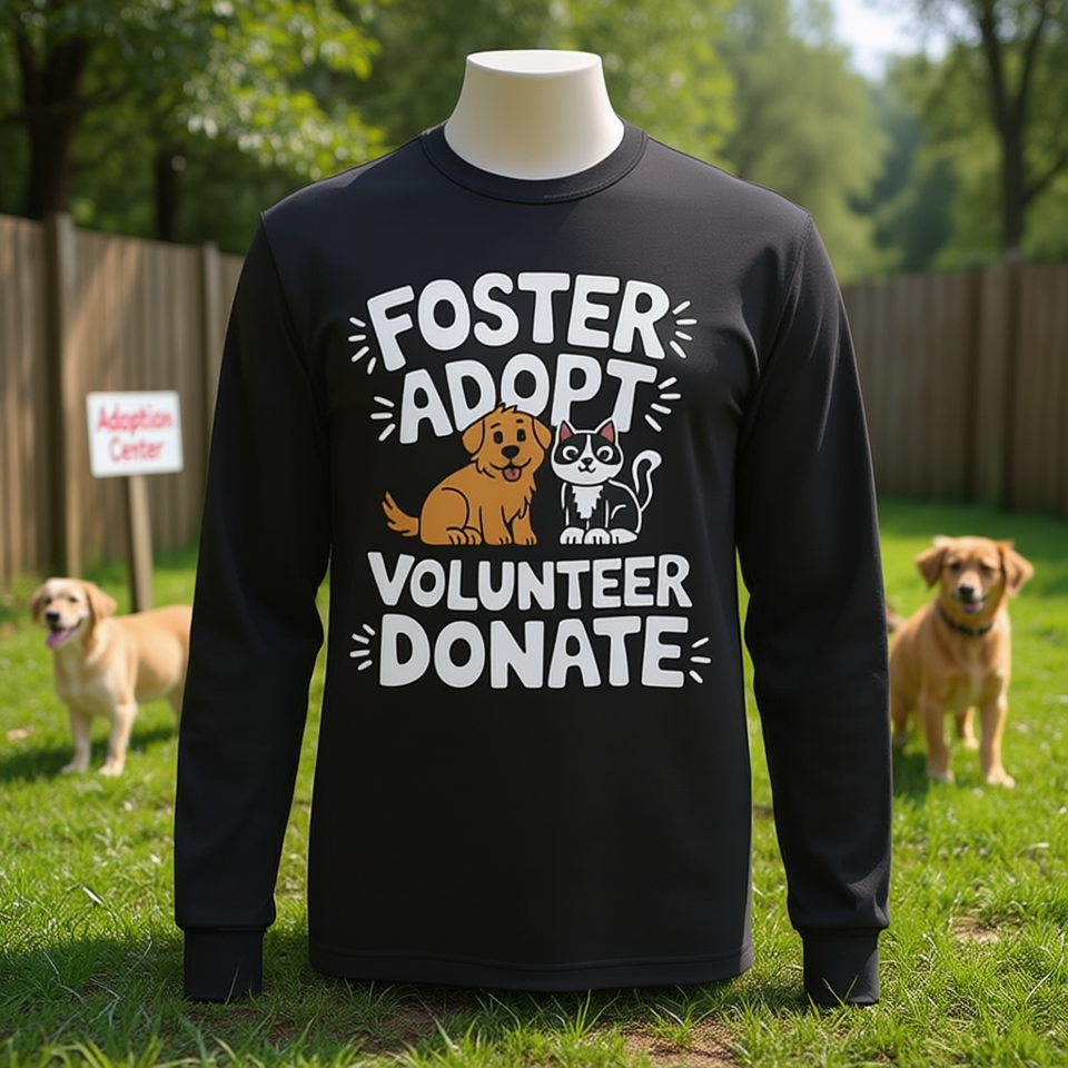 Maglietta a maniche lunghe per volontari di soccorso animali: adotta, volontariizza, dona - Cani e Gatti