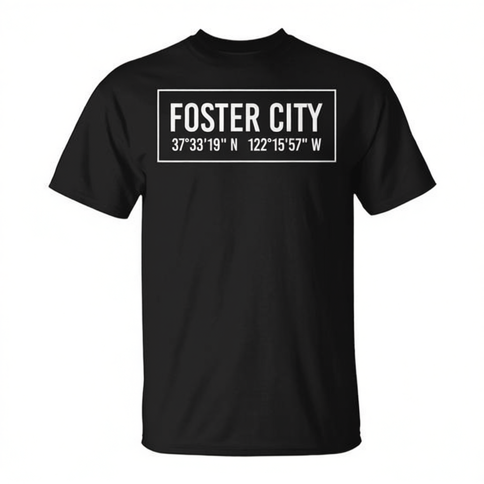 T-shirt Foster City Ca California Coordinates nera unisex taglia adulto