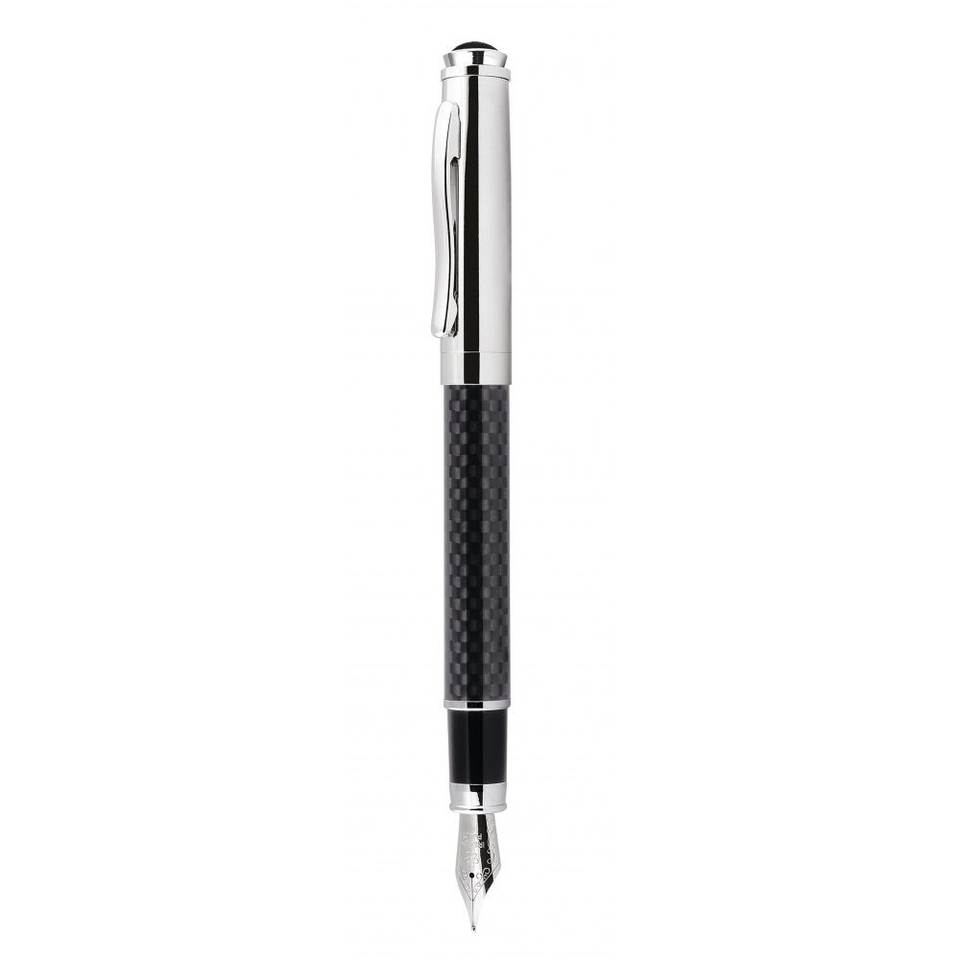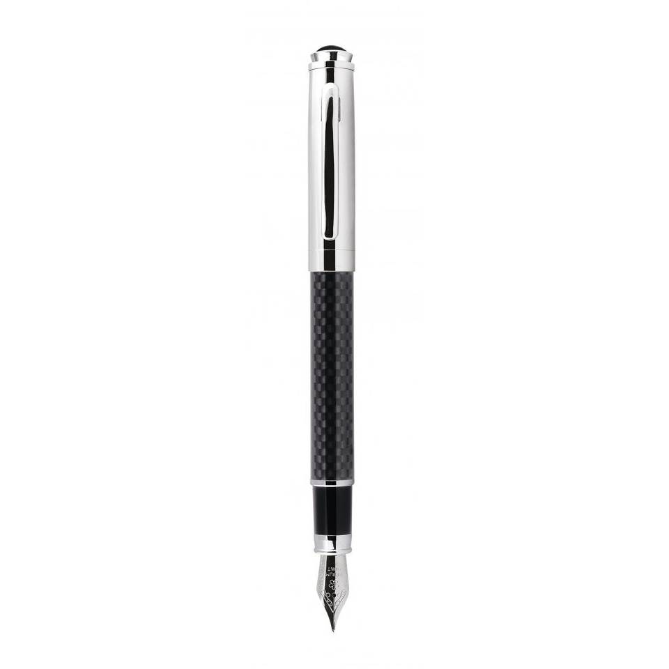 Fountain Pen Chromed Carbon Fiber Body With Silver Trim And Fine Nib