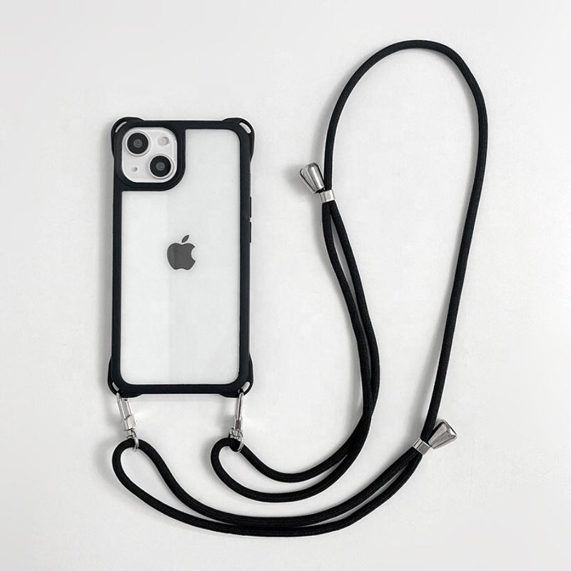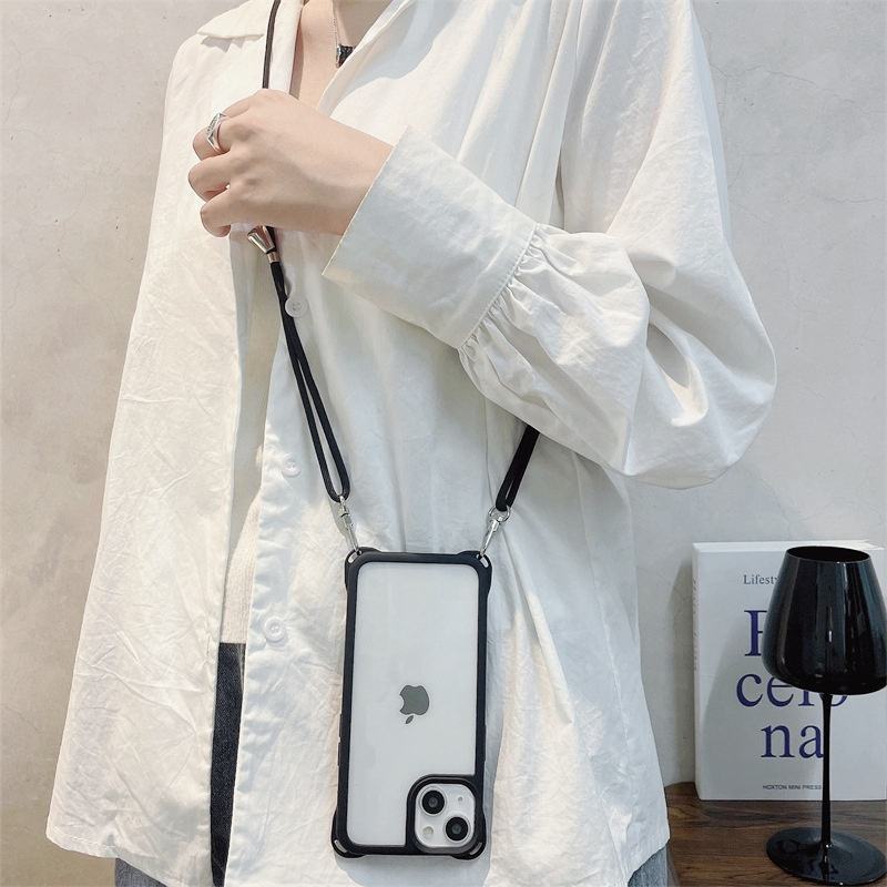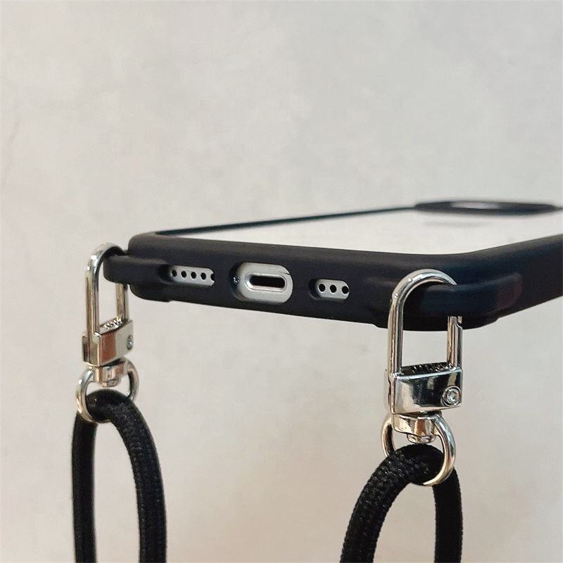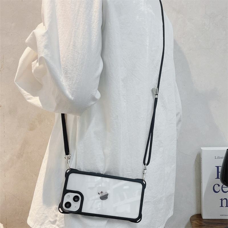 Custodia per Telefono con Foro per Laccetto a Quattro Angoli per iPhone 16 13 14 15 Pro 12 11 Pro Max, Custodia Rigida in PC con Cinturino a Catena sul Fondo