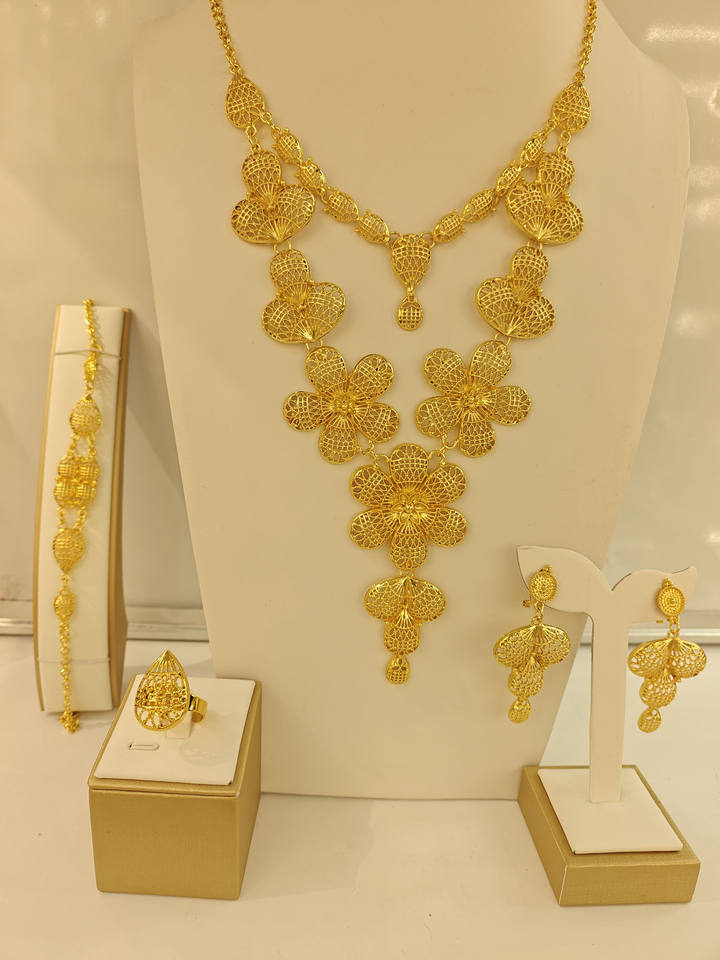 Set di gioielli africani in oro laminato 24k, quattro pezzi, stile Dubai, oro giallo, collana e orecchini, gioielli neri africani