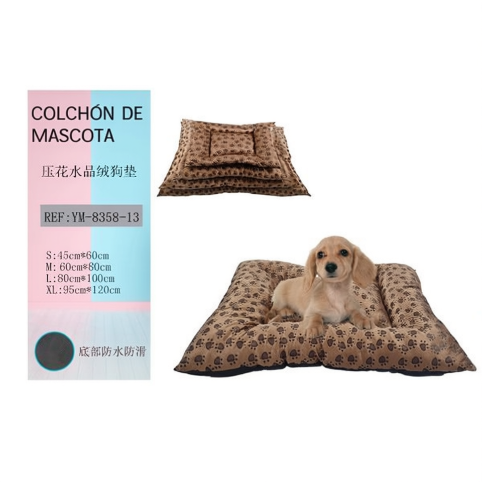 Four-Piece Embossed Crystal Velvet Dog Mat Set Coffee Footprints Design for Pet Beds