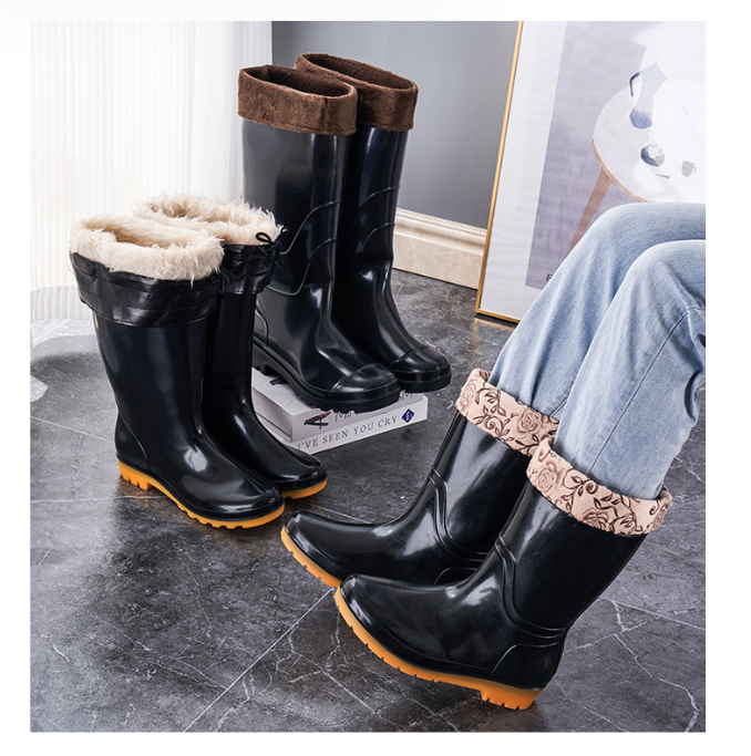 Four Seasons Anti slip Waterproof Shoes Rain Boots High Tube Rubber Shoes With Velvet Cotton Acid and Alkali Resistance