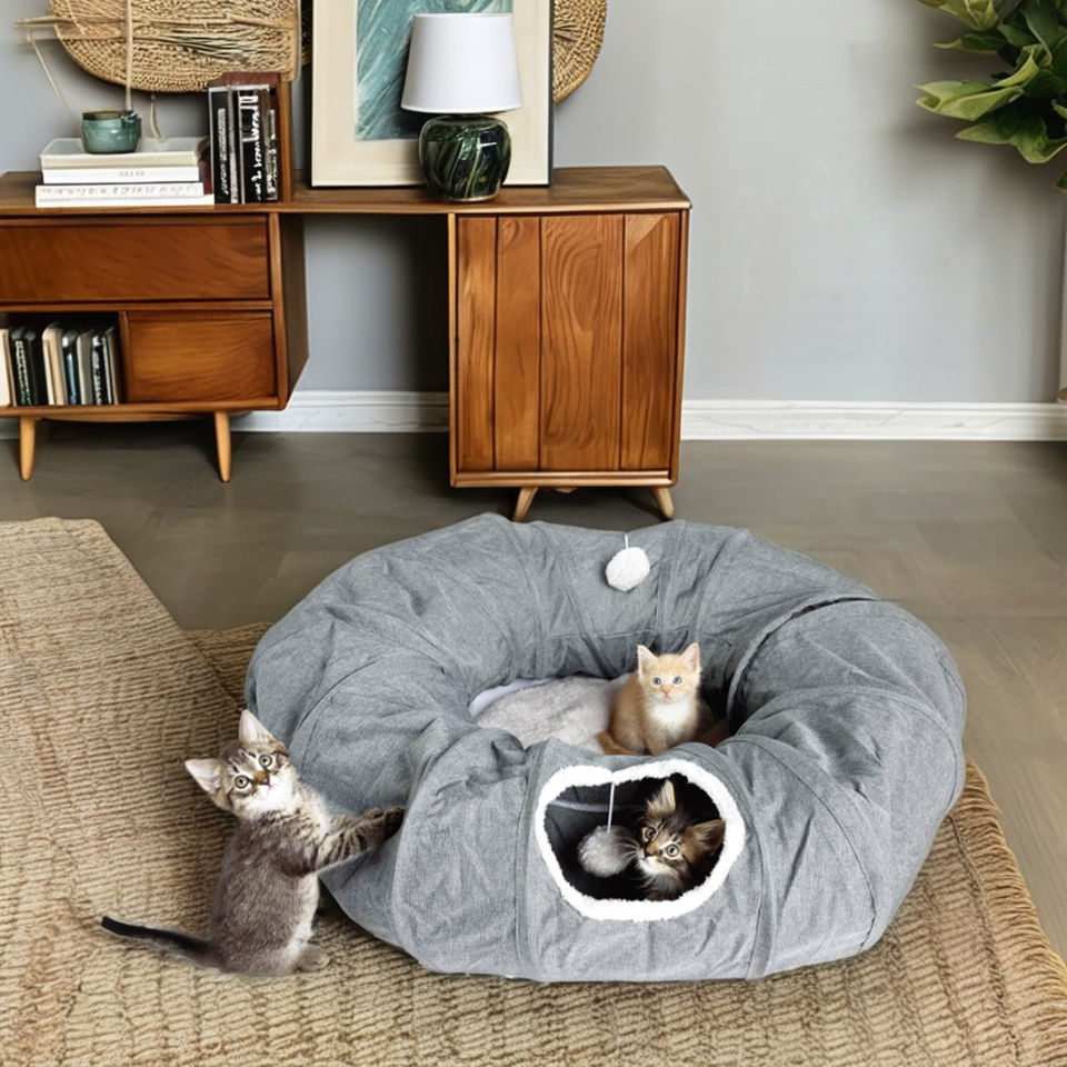 Quattro stagioni generale tubo del gatto letto all'ingrosso gratta e vinci giocattolo pieghevole Tunnel per gatti lunghi letti grigi per animali domestici