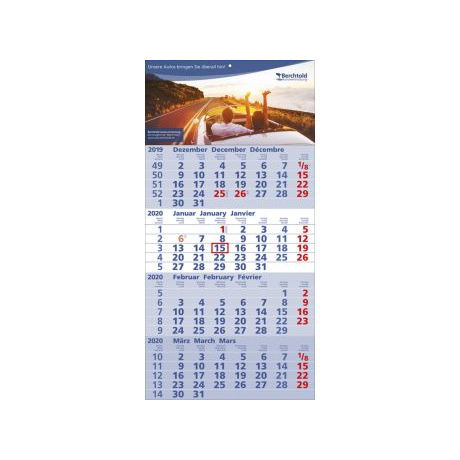 Pianificatore Trimestrale "Hit" con Barra Inferiore in Formato 30 x 52 cm, Blu PT 286, Indicatore di Data Blu