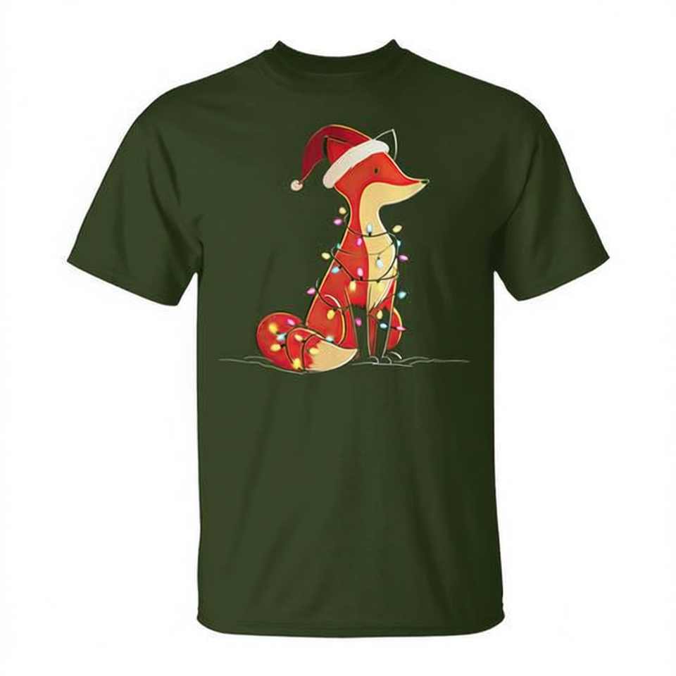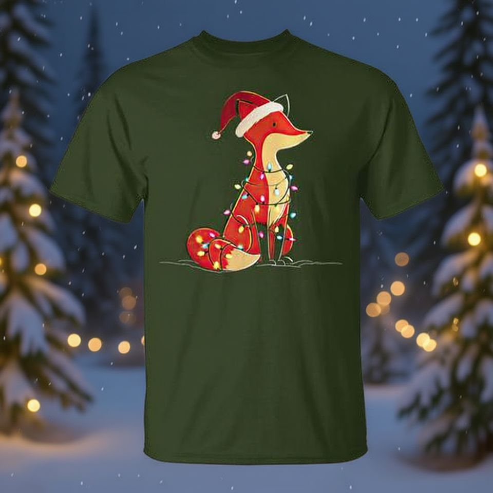 T-shirt con grafica animalier di Fox Christmas Lights, unisex per adulti