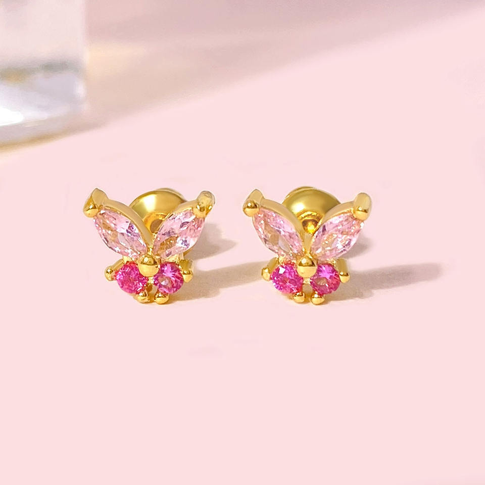 Foxi Factory Wholesale Price Fashion Stud Earrings Aretes Real Gold Plated Cute Butterfly Earrings for Girls