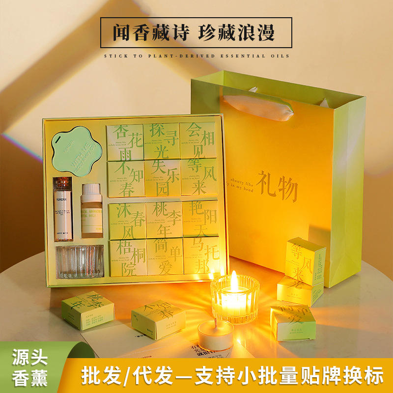 Fragrant Poetry Scented Candle Gift Set Cup Shaped Soybean Mixed Wax Smokeless Handmade Wedding Favor