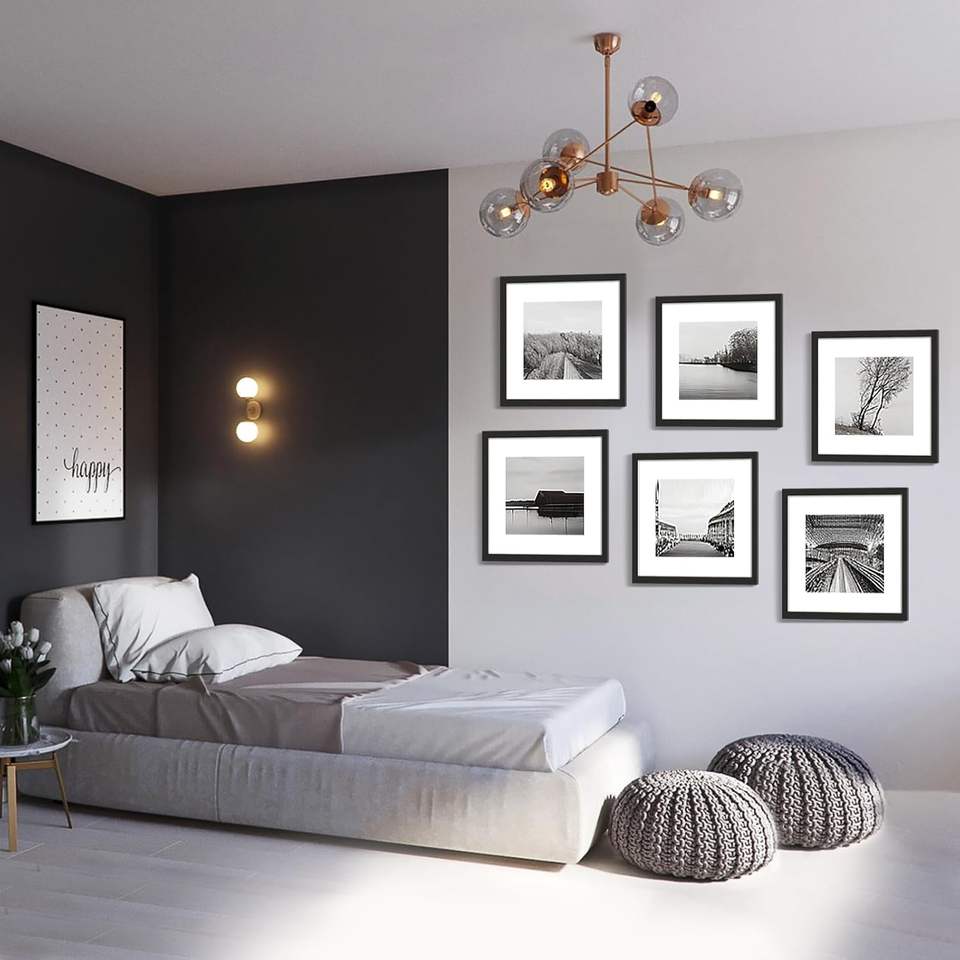 Set di 3 Cornici 20x20 per Esporre Foto con Passepartout o Senza, Cornici in Legno Massiccio Nero per Parete