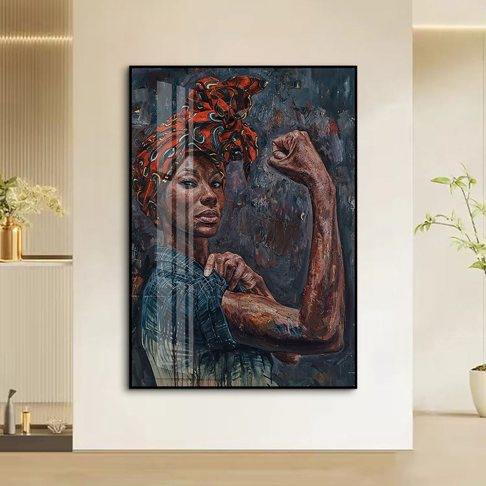 Dipinto di porcellana di cristallo di dimensioni verticali incorniciato che dà potere alla figura del velo etnico decorazione della parete per il soggiorno