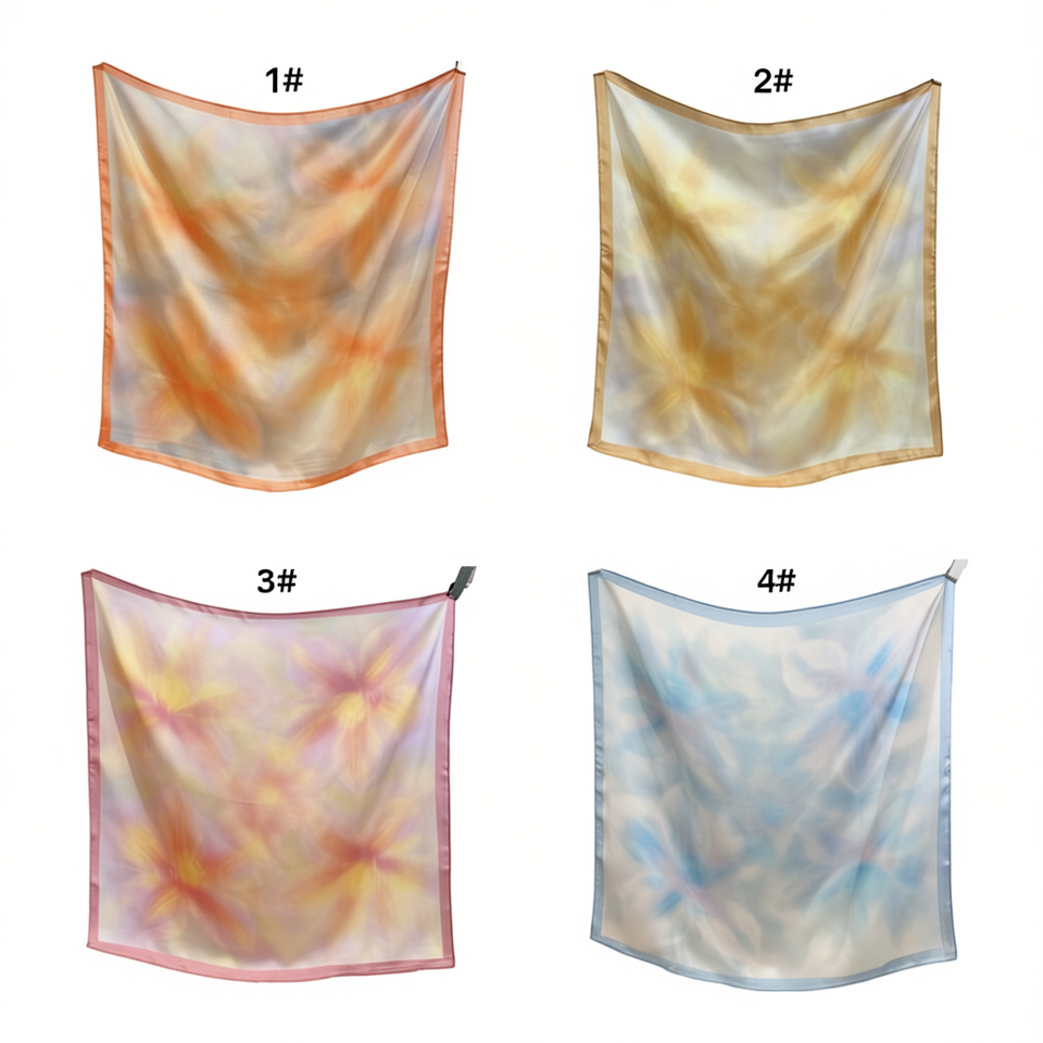 Foulard quadrato piccolo con sfumature di frangipani 70x70 cm per donna, accessorio moda