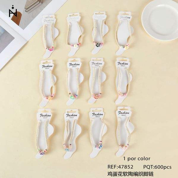 Cavigliera Intrecciata in Argilla Polimerica Frangipani, 1 Pezzo, Gioielli alla Moda per Donne