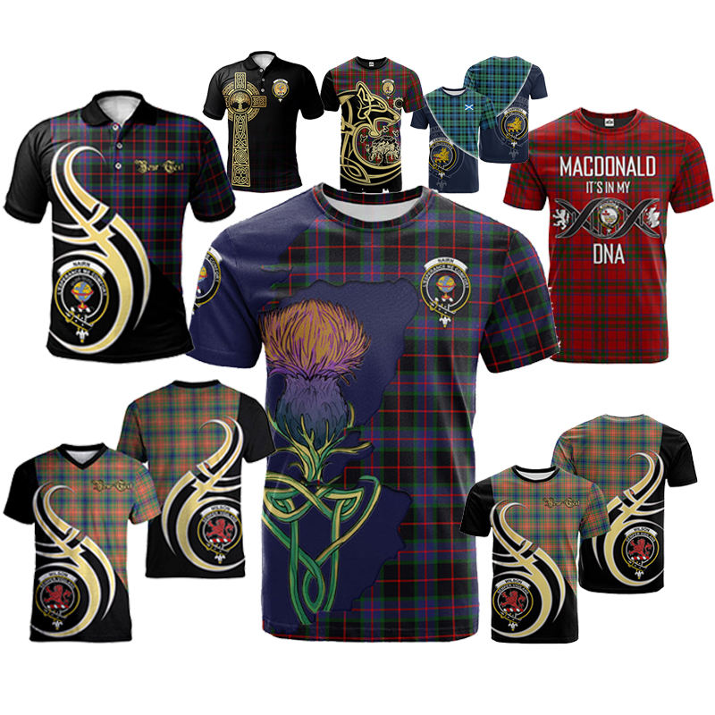 Fraser Lovat Tartan Shirt Men McKnight Clan Tartan T-Shirt Cel Wolf Family Crest Short Sleeve Print Scottish Clan Crest Design