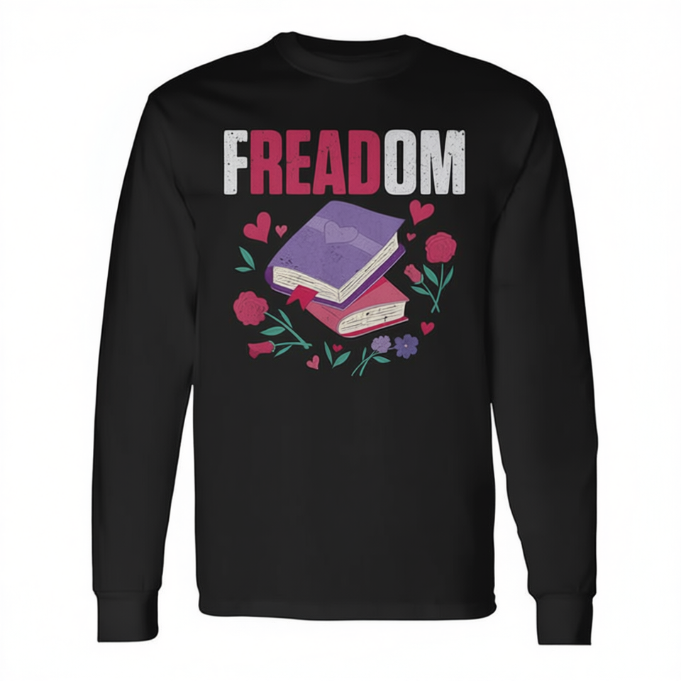 Maglietta a maniche lunghe Freadom con design Libro, Lettura, Libertà di leggere, Abbigliamento promozionale