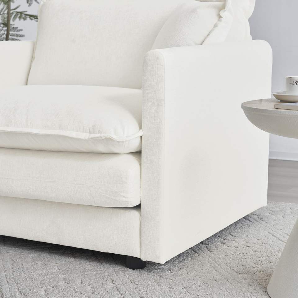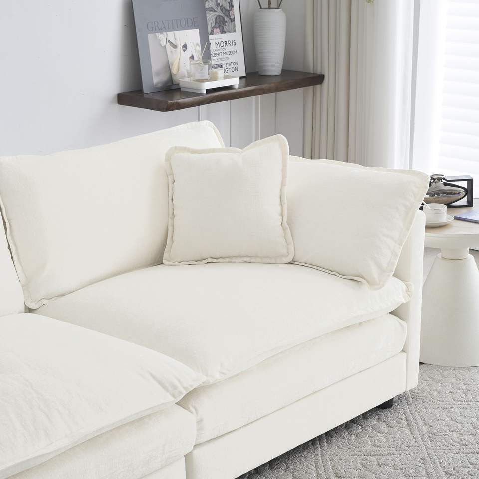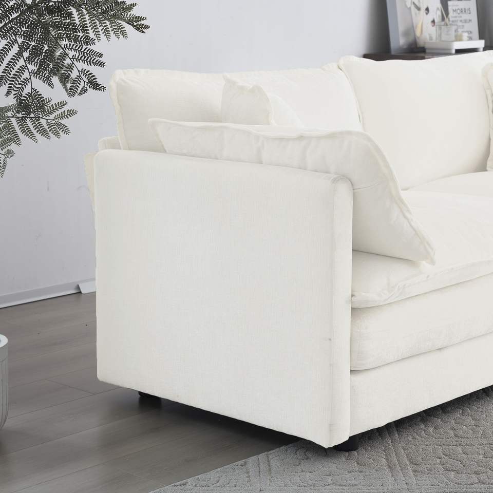 Divano Componibile Modulare a L Oversize in Ciniglia Bianca, Combinazione Libera, con Pouf Reversibile per Soggiorno